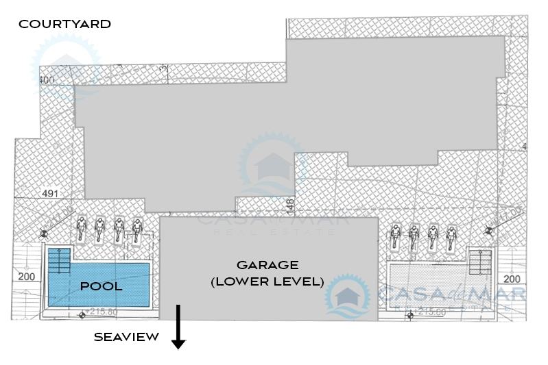Na prostranoj okućnici površine 550 m2 se smjestio infinity bazen, veliko sunčalište, ljetna kuhinja i lounge zona.