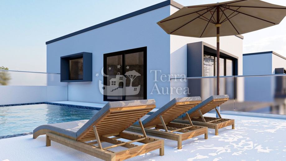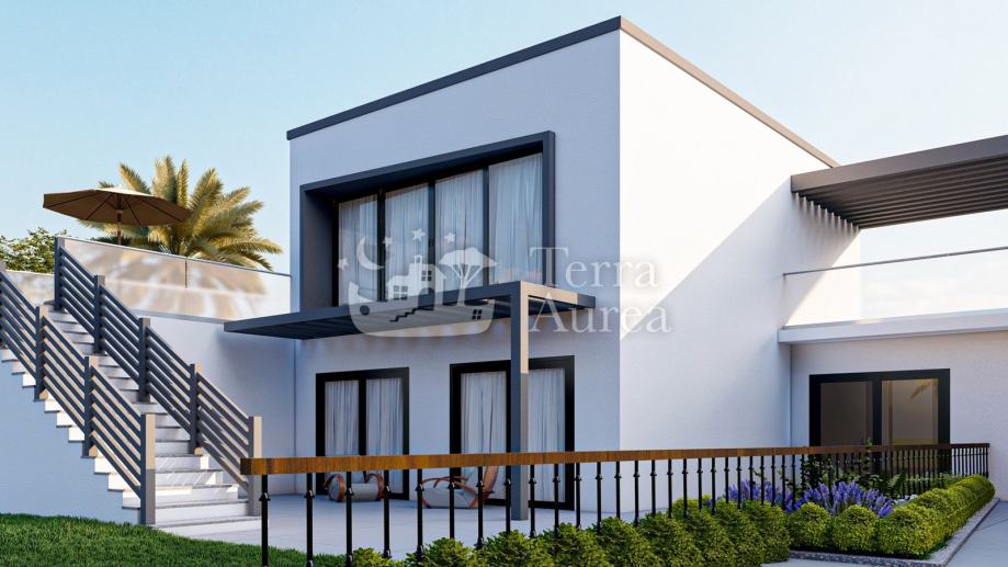 Prema projektu, grade se ukupno četiri vile, koje će imati prekrasan pogled na more i otok Cres. Ova vila ima ukupnu površinu od 136 m2, te se sastoji od prizemlja, kata i krovne terase. U prizemlju su smještene tri spavaće sobe, dva kupatila, spremište i hodnik te unutarnje stepenice koje vode na kat. Na katu se nalazi dnevni dio sa kuhinjom, WC i hodnik. Unutarnje stepenice nastavljaju se do krova gdje je smještena krovna terasa sa jacuzzijem sa koje se pruža neponovljivi pogled na more.