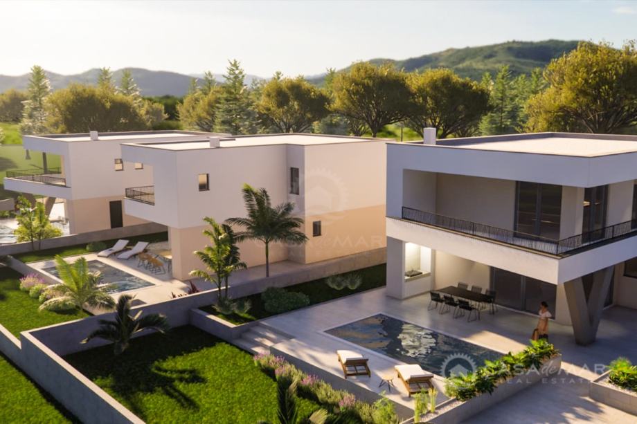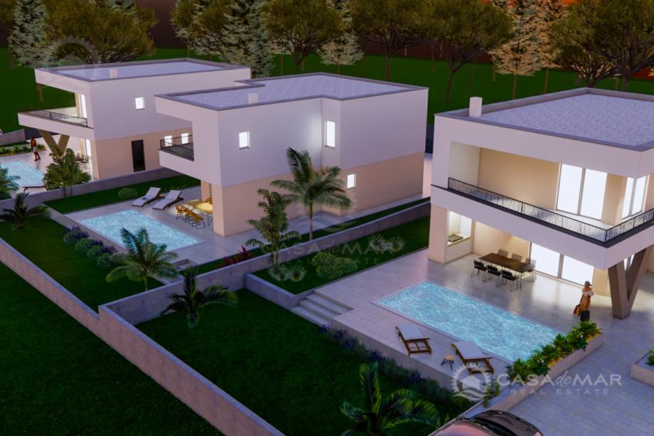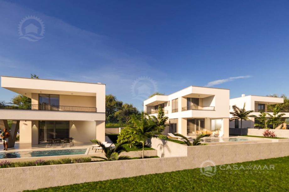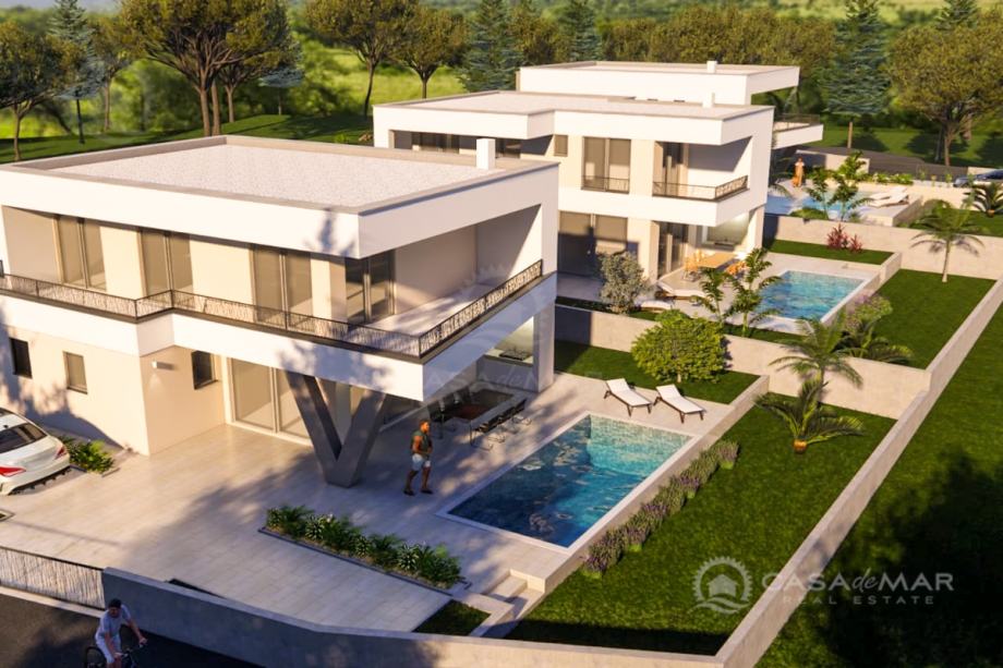 Vila će biti opremljena klima uređajima, podnim grijanjem, PVC i ALU stolarijom, video nadzorom i protuprovalnim vratima.