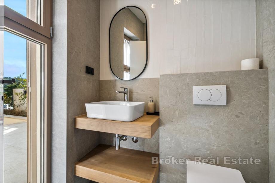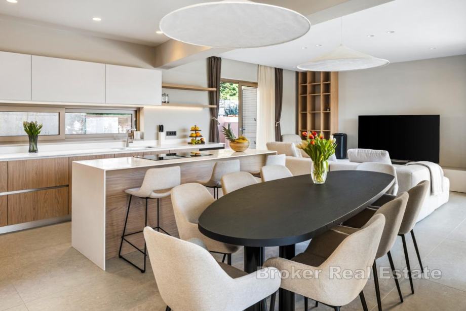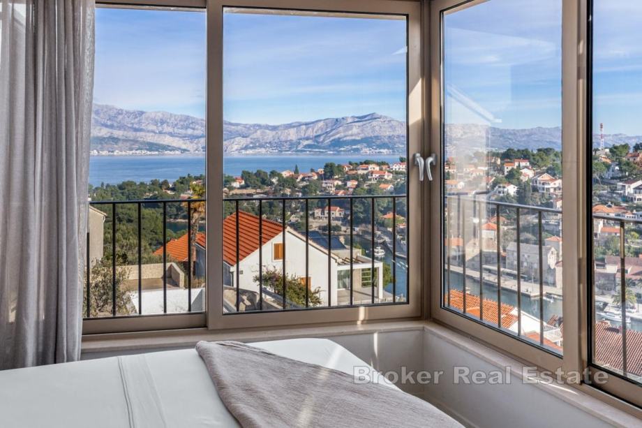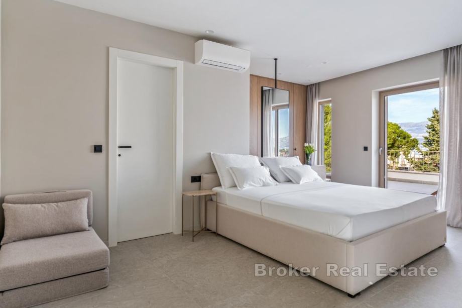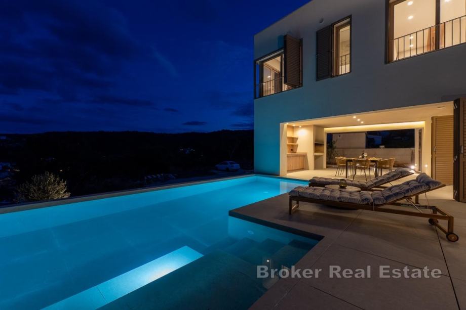 Vila je dizajnirana tako da maksimalno koristi prirodno svjetlo, a otvoreni prostori i prostrane terase omogućuju uživanje u pogledu na more.
