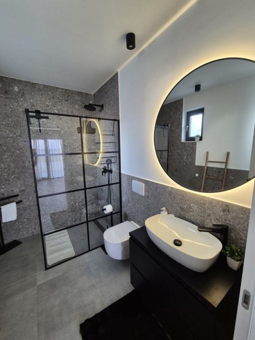 Vila je građena od vrhunski kvalitetnih materijala, uključujući aluminijsku stolariju i 10 cm termoizolacije. Podne obloge su od keramike, a za dodatnu udobnost u svim prostorijama ugrađeni su klima uređaji i podno grijanje/hlađenje.