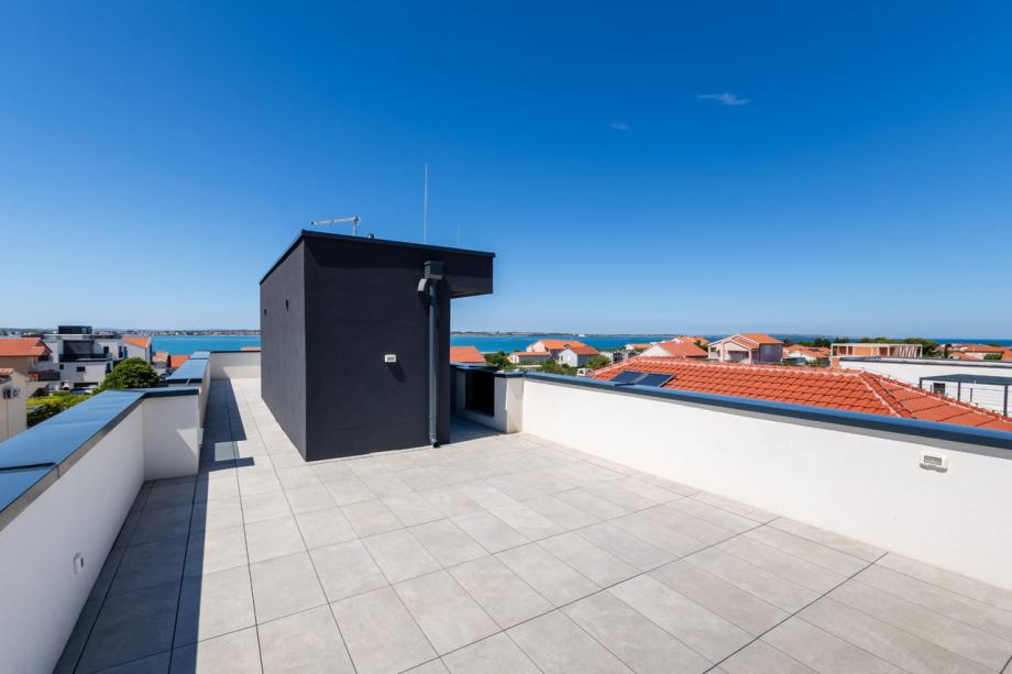 - Krovna terasa: jacuzzi i ljetna kuhinja s roštiljem uz panoramski pogled na more.
