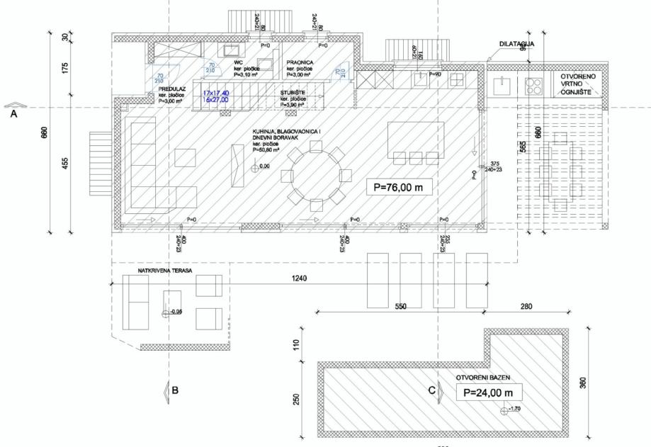 - Garaža za osobne automobile i otvoreni bazen od 24 m²