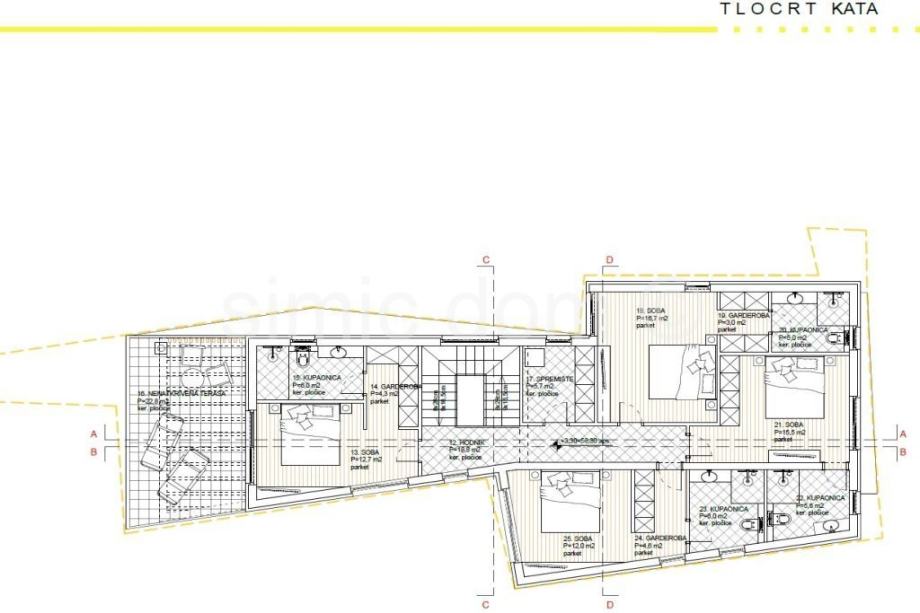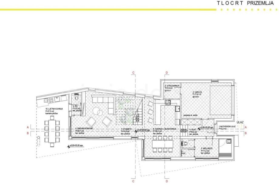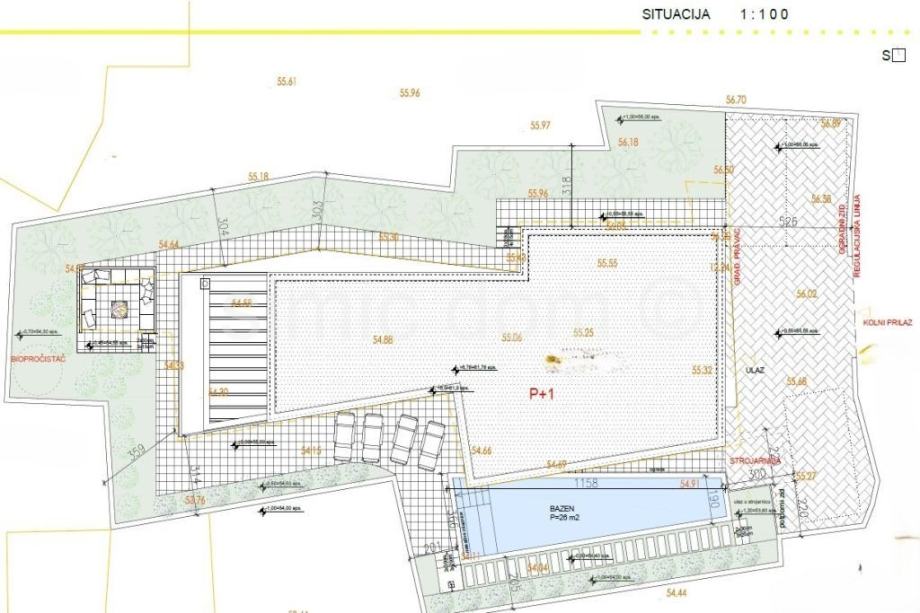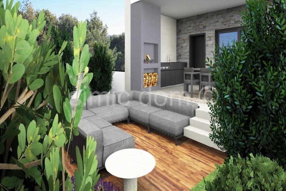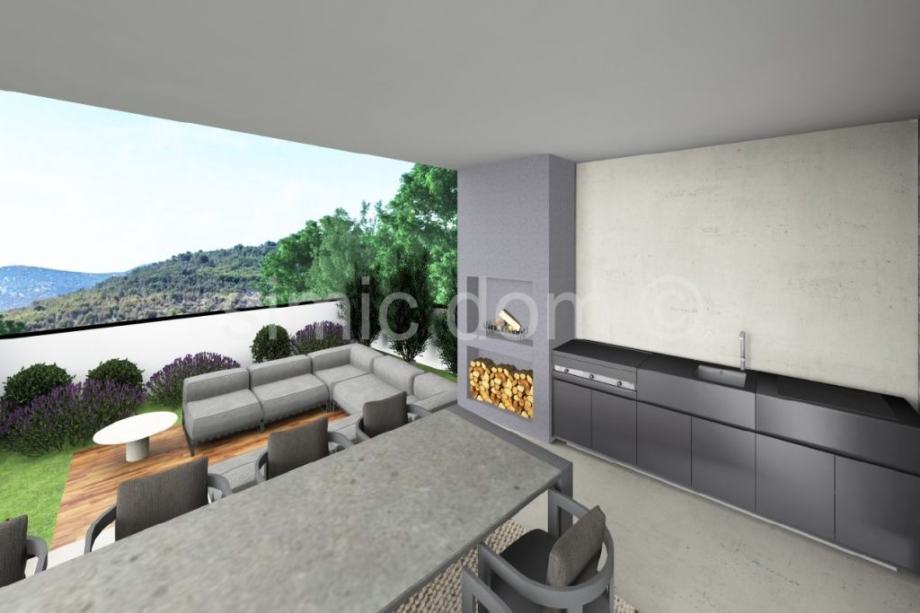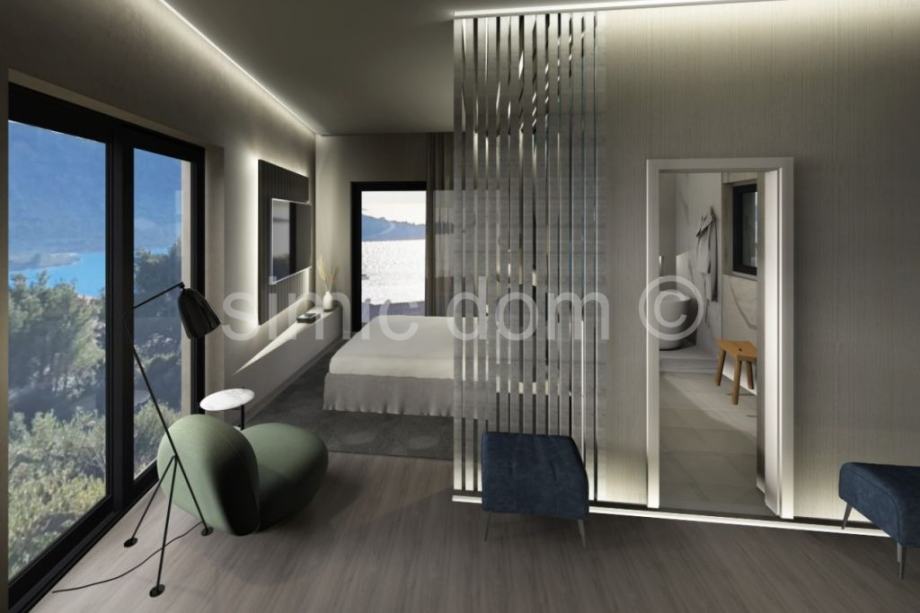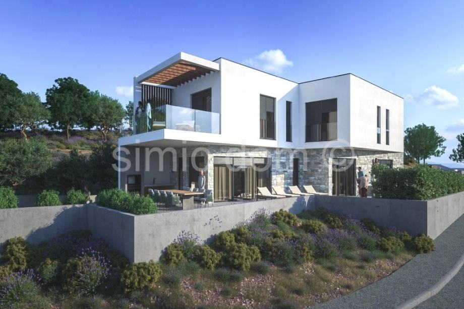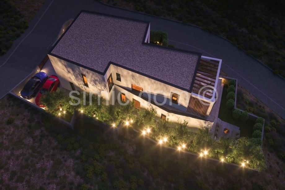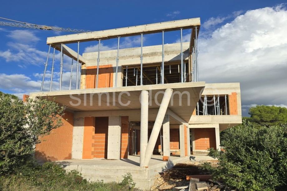 Na prodaju je vila u izgradnji smještena u mirnom dijelu Primoštena, udaljenosti 850m od plaže i od centra mjesta. Vila je izgrađena na zemljištu površine cca 570 m2, ima ukupnu neto korisnu površinu od oko 242m2 te će se prostirati na dvije etaže. U prizemlju se nalazi garaža, strojarnica, wellness s toaletom, dodatni gostinjski toalet, kuhinja s blagovaonicom i dnevni boravak koji ima izlaz na predivnu natkrivenu terasu s ljetnom kuhinjom, sjedećim dijelom i sunčalištem uz bazen. Unutrašnje stepenište vodi na kat na kojem su smještene četiri spavaće sobe, svaka s vlastitom kupaonicom i garderobom, spremište i hodnik. Glavna spavaća soba ima izlaz na prostranu, pergolom natkrivenu terasu površine 22 m2. Pri gradnji i opremanju vile koriste se kvalitetni materijali i oprema: dnevni boravak i kupaonice će imati podno grijanje preko dizalice topline; električno podizanje roleta, podovi parket/keramika po izboru kupca u cjenovnom rangu po troškovniku, u garaži punionica za električne automobile te će bazen biti betonski grijan. Okućnica će imati osiguran parking za tri automobila. Mogućnost izmjene materijala i opreme po izboru i uz nadoplatu kupca zavisno o mogućnosti prilagodbe i fazi izvedenih radova na objektu. Planirani rok dovršetka objekta je srpanj 2025. godine.