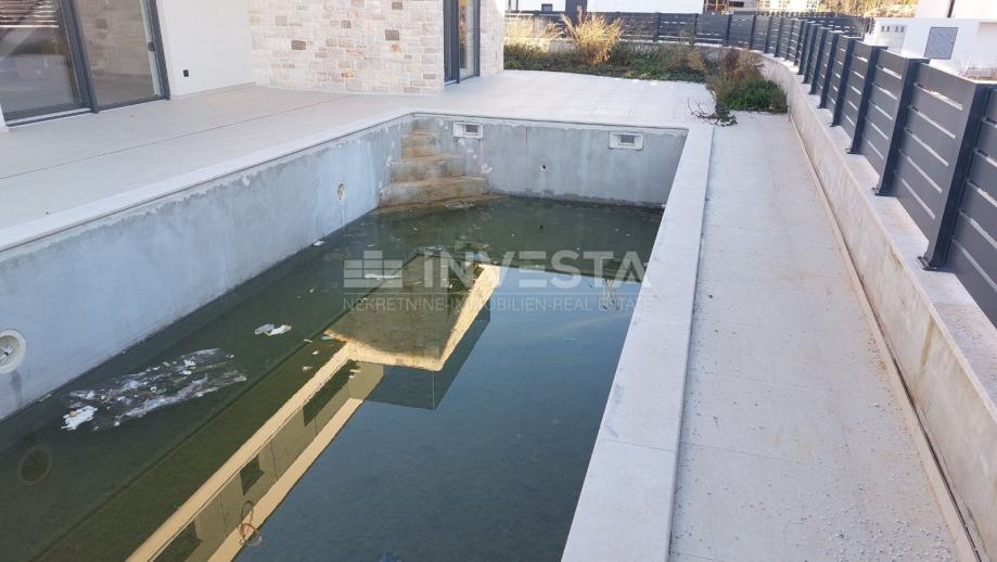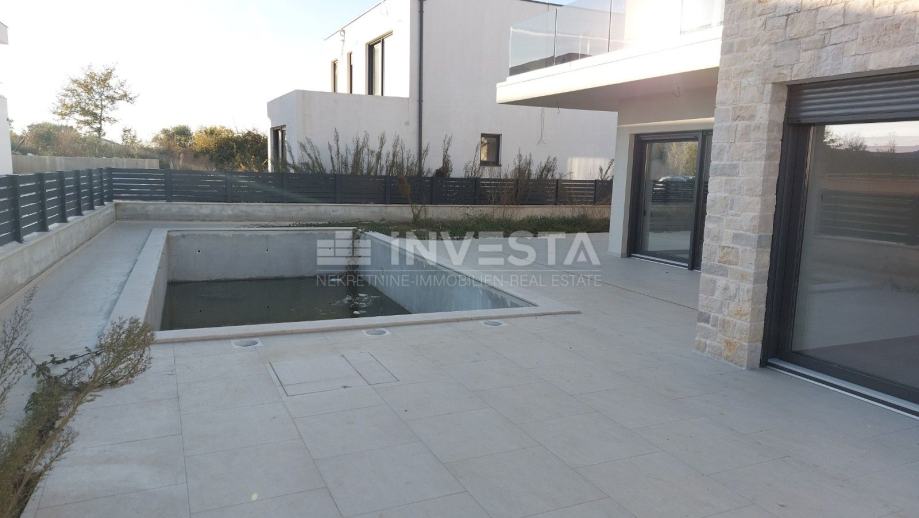 Iz dnevnog boravka izlazi se na dvije terase – jednu predviđenu za sunčalište, a drugu za druženje uz bazen. Vanjski prostor nudi odličnu osnovu za uređenje mediteranskog vrta, prostoru za roštilj ili lounge kutka.