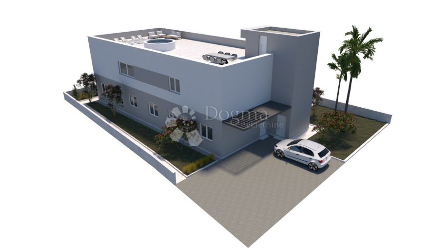 Stan na katu od neto 138m2 ističe se prostranom terasom od 32m2 te impresivnom krovnom terasom od čak 183m2 s panoramskim pogledom na more,idealno je mjesto za sunčanje ,druženje i stvaranje nezaboravnog doživljaja boravka.