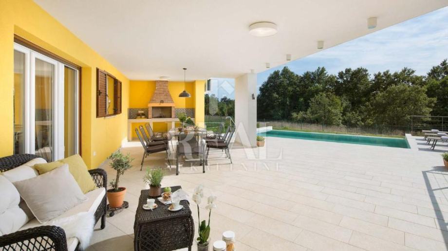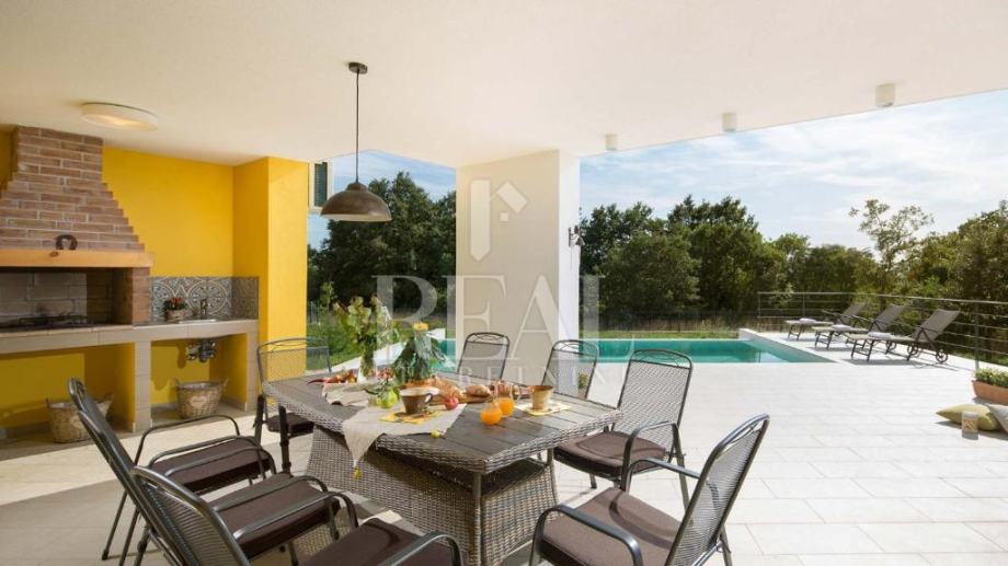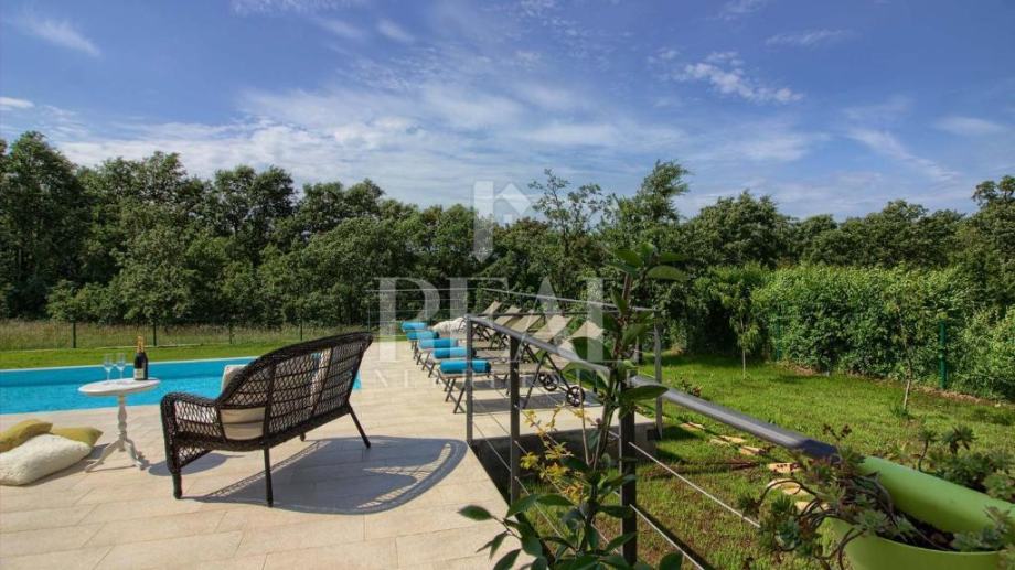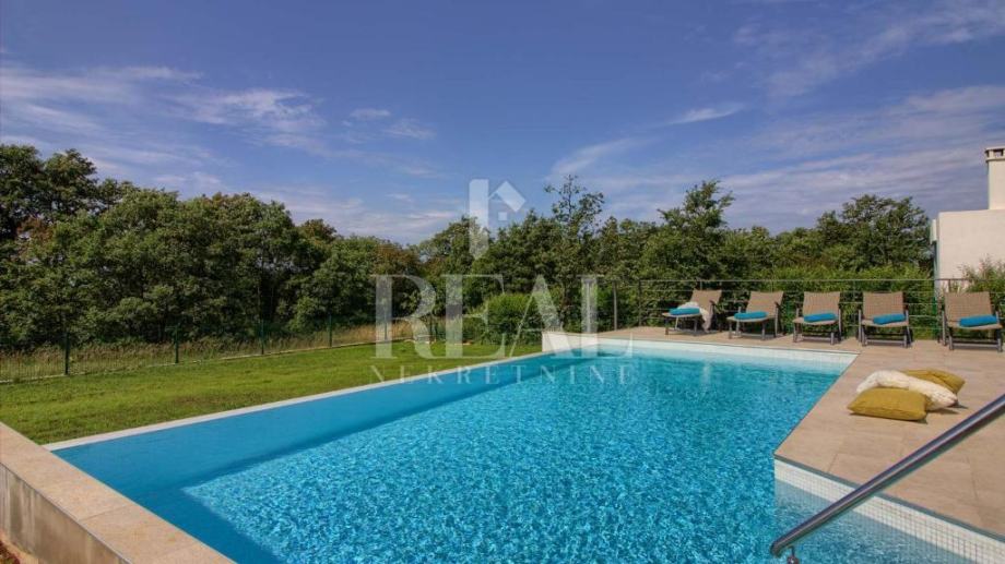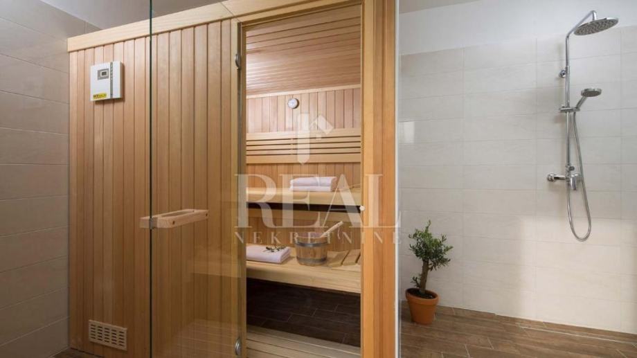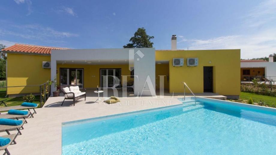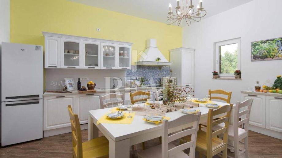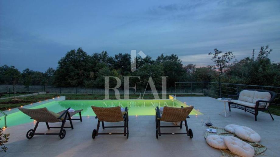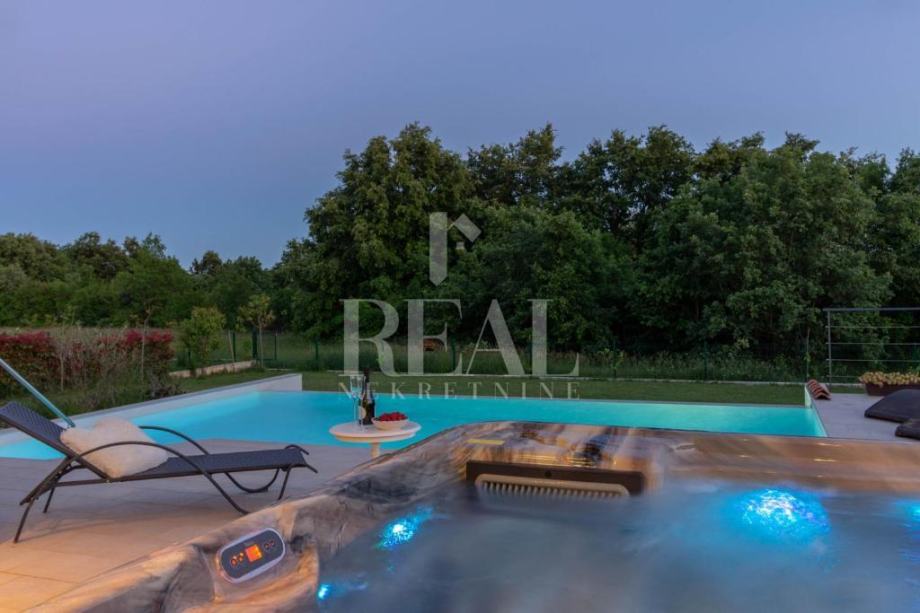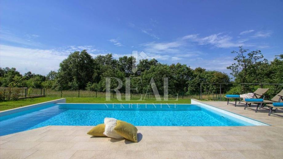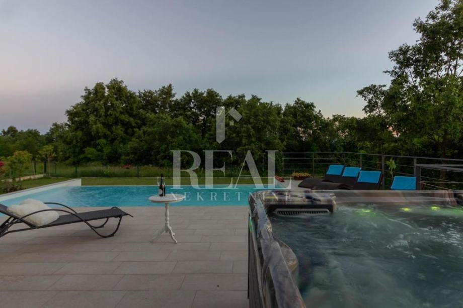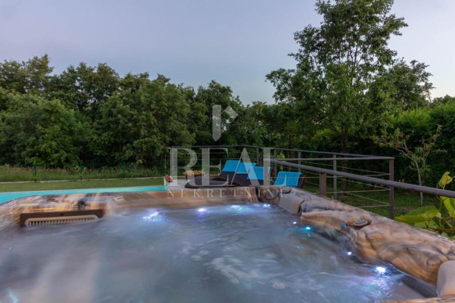 Savićenta, lijepa moderna kuća od 180m2 stambene površine . Sastoji se od dnevnog boravka sa kuhinjom i dnevnim dijelom ,tri spavaće sobe sa vlastitim kupaonicama i ostave. Iz dnevnog boravka izlazi se na prostranu natkrivenu terasu sa kaminom i infinity bazenom veličine 25m2 i jacuzzia sa pogledom u zelenilo. Za grijanje i hlađenje zaduženi su klima uređaji smješteni u svakoj prostoriji i peć na pelete. Zemljište je prostrano 1097m2 a sa prednje strane objekta se nalazi natkriveni parking za četiri automobila.