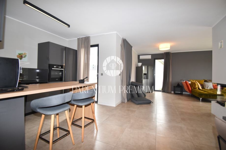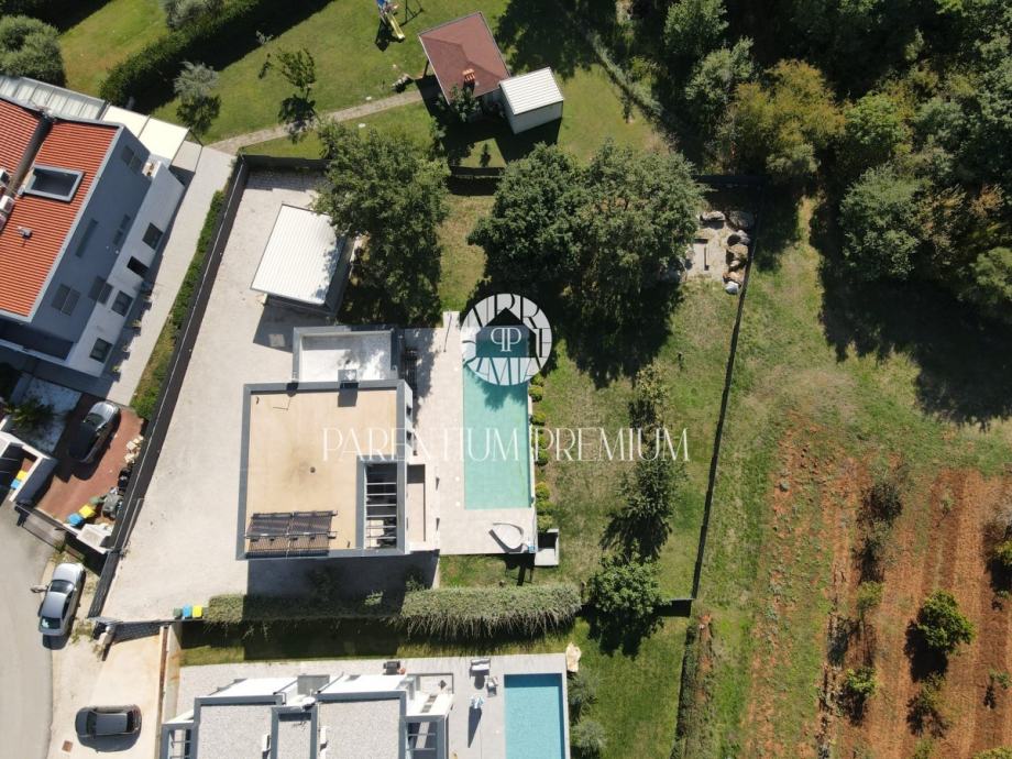 U predgrađu Poreča, na samo 2 km od plaže i centra, smjestila se ova moderna villa površine 250 m2 na zemljištu površine 1139 m2.