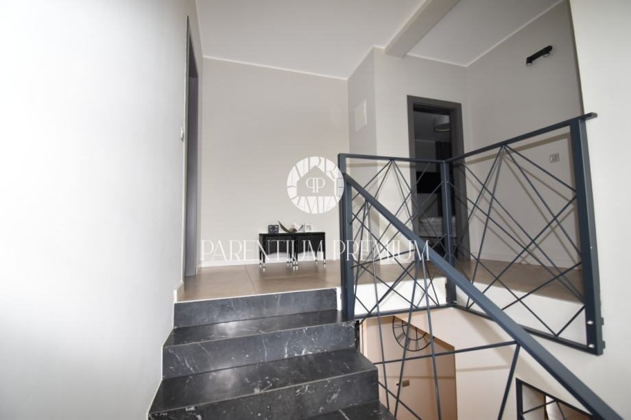 Unutarnje stubište vodi na prvi kat gdje se nalaze tri spavaće sobe s vlastitim kupaonicama i izlazom na veliku terasu.