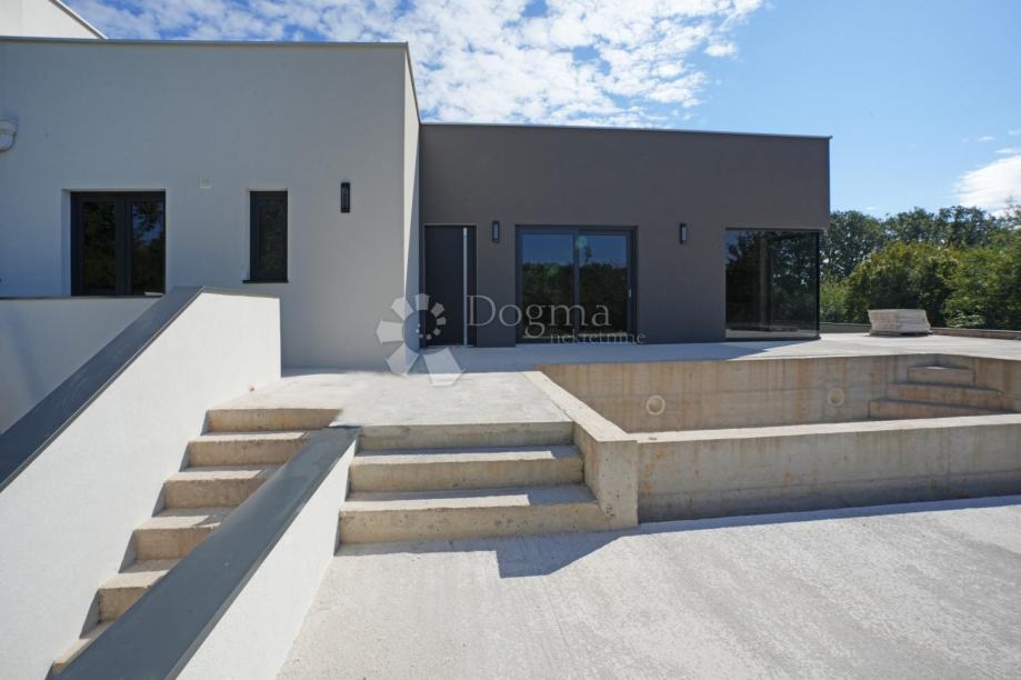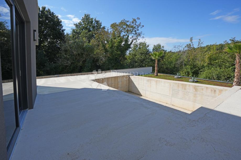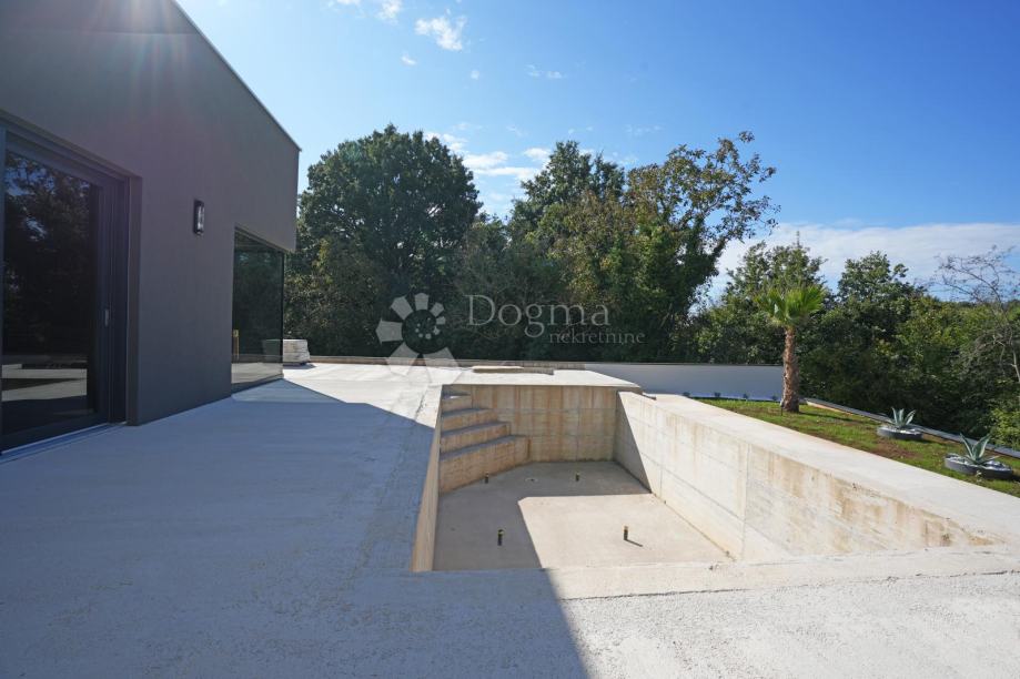 Okućnica od 350 m² nudi dovoljno prostora za uređenje vrta, sunčanje uz bazen ili postavljanje vanjskog prostora za druženje. Sve ove karakteristike čine ovu kuću idealnim mjestom za ugodan i luksuzan život u mirnom okruženju Barbana.