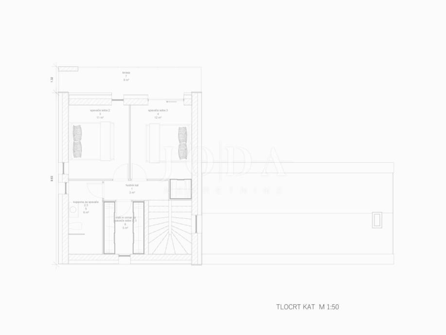 Villa će biti površine 150m2 i gradi se na parceli površine 640m2. Podijeljena je na prizemlje i kat. U prizemlju će se nalaziti hodnik, open space dnevni boravak, kuhinju i blagavaonicu s izlazom na terasu, jedna spavaća soba s vlastitom kupaonicom i spremište. Na katu će se nalaze još dvije spavaće sobe, kupaonica, garderoba i terasa koja će imati djelomični pogled na more i zelenilo. Villi pripada okućnica na kojoj će se nalaziti bazen, sunčalište i prostor za druženje tokom toplih ljetnih mjeseci. U izgradnji koriste se najkvalitetniji materijali i oprema, a planirani dovršetak gradnje je na ljeto 2025. godine. Za više informacija, kontaktirajte nas!