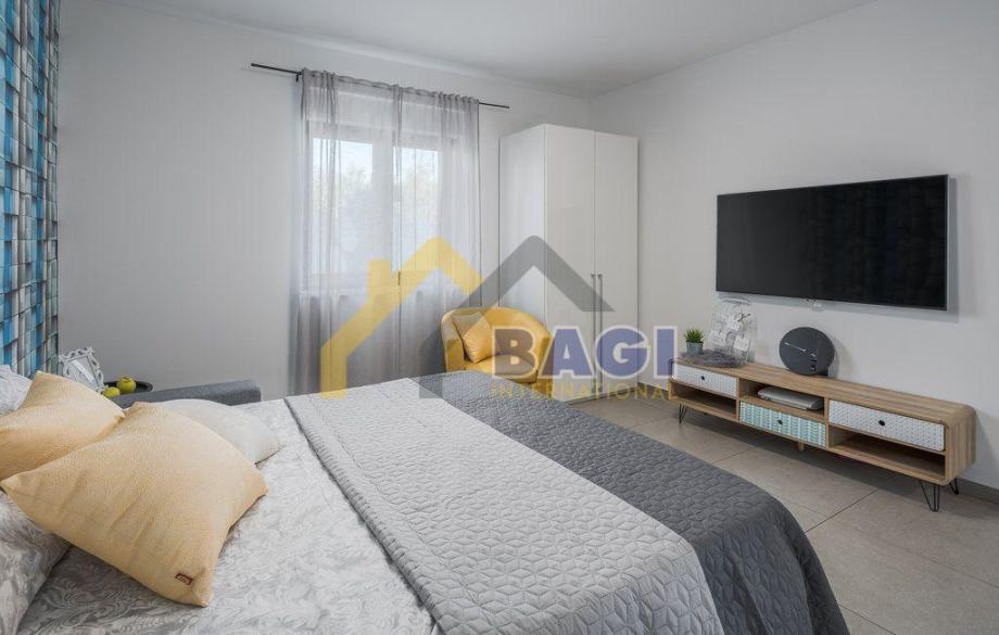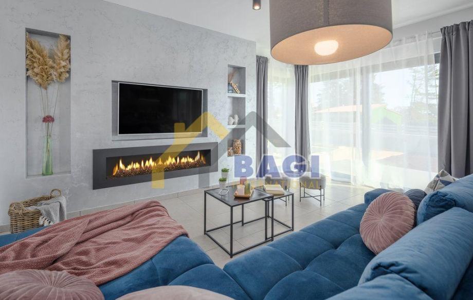 Na prodaju moderno uređena samostojeća vila. Vila se prostire na uređenoj ograđenoj okućnici od cca 588m2 sa privatnim bazenom , te vrtom sa navodnjavanjem, dok sama nekretnina ima 187m2 i obuhvaća prizemlje i prvi kat. U prizemlju se nalazi visokokvalitetno opremljena kuhinja, dnevna kupaonica, jedna spavača soba te dnevni boravak sa izlazom na bazen i ljetnu terasu sa roštiljem i ljetnom kuhinjom. Na katu su se smjestile tri prostrane spavaće sobe svaka sa vlastitom kupaonicom, te izlazom na balkon, na katu se nalazi i prostorija opremljena kao teretana. Sve prostorije su klimatizirane a kroz cijelu vilu je postavljeno podno grijanje. U dnevnom boravku također je postavljen i moderan kamin na drva koji daje poseban ugođaj u prohladnim mjesecima. Nekretnina se prodaje kompletno namještena. Pri samoj gradnji i opremanju nekretnine iznimno se brinulo o detaljima, dajući naglasak na komfor i luksuz za buduće vlasnike i goste.