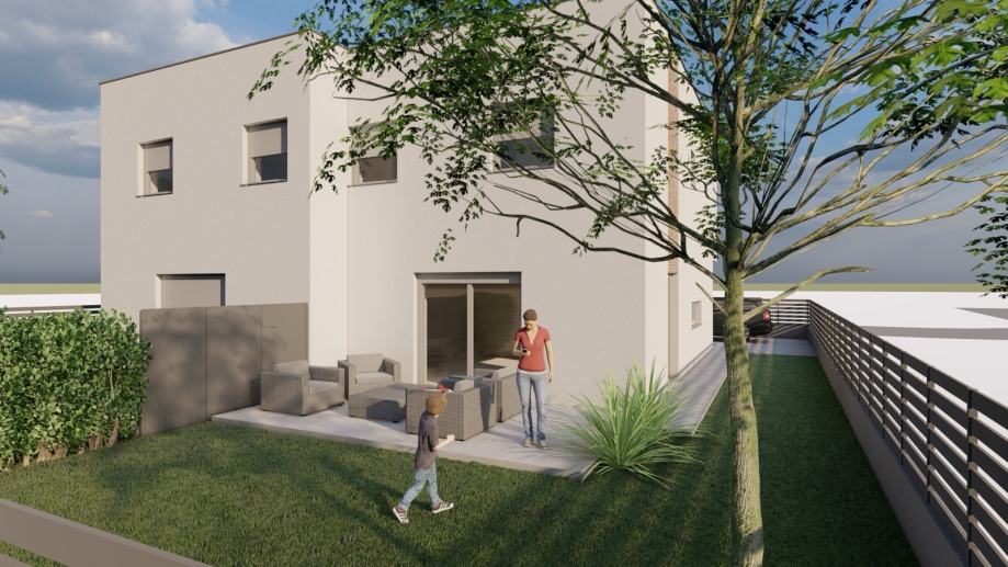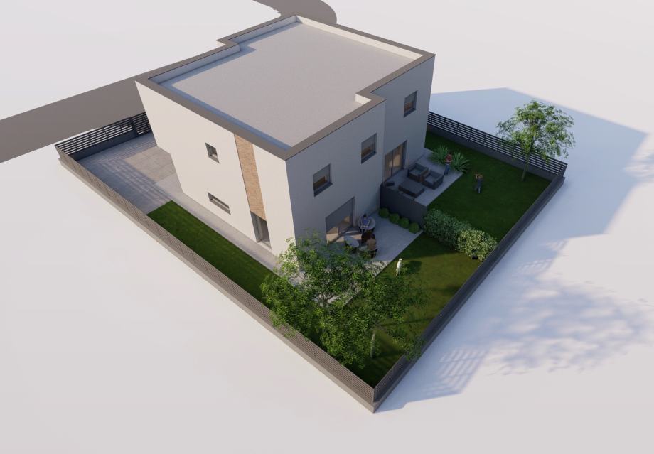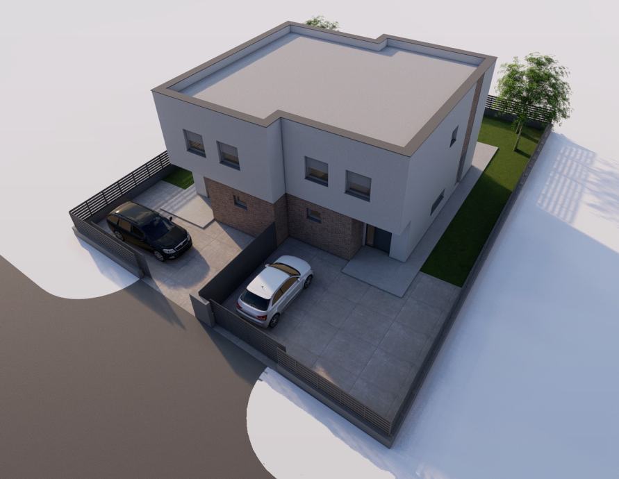 Vrbovec,Livadarska ulica,u ponudi novi projekt moderne duplex kuće. Lokacija je u mirnoj ulici bez puno prometa te 400 metara od centra grada i u neposrednoj blizini vrtića,osnovne škole,trgovine i svih ostalih potrebnih sadržaja. Kuća se sastoji od open space dnevnog boravka,kuhinje i blagovaone,2 spremišta,2 kupaone te tri sobe na katu. Kuća će bit ograđena te imat parking za dva auta sprijeda,prostranu terasu te zelenu površinu.