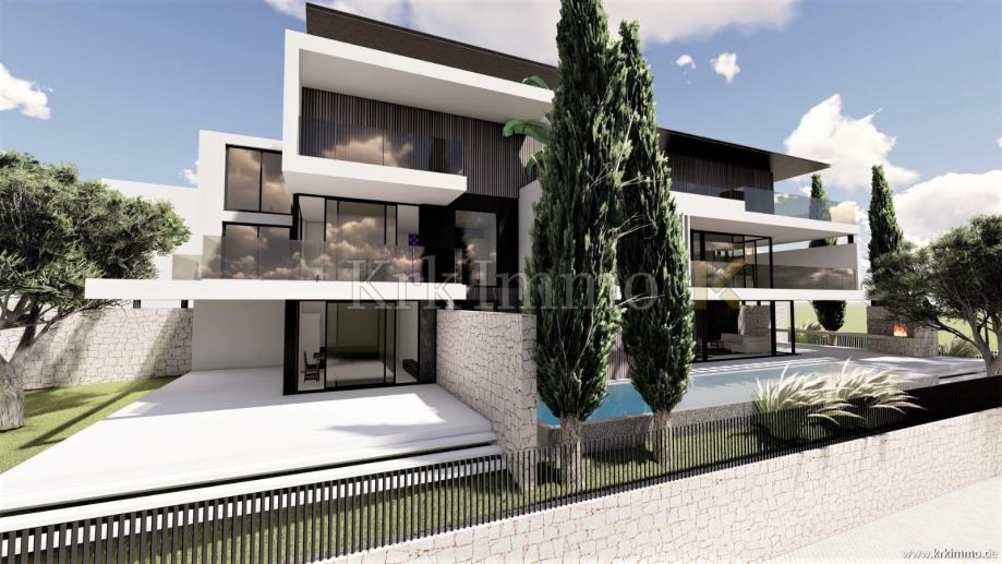 Moderni apartman s bazenom i pogledom na more! Grad Krk (prodaja)