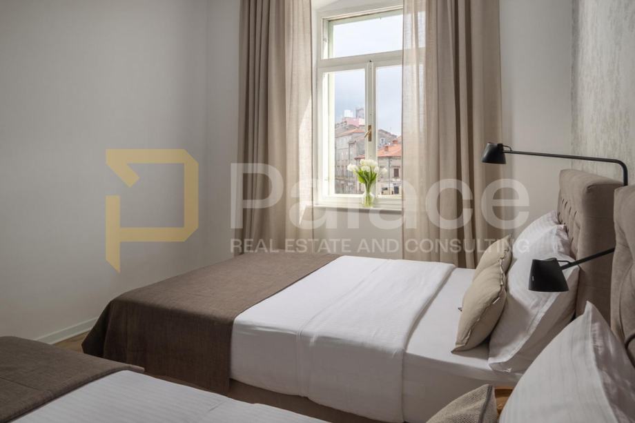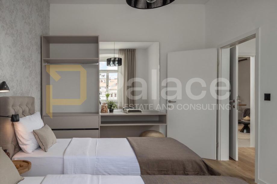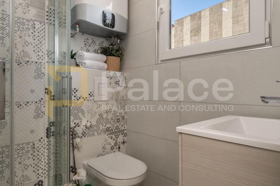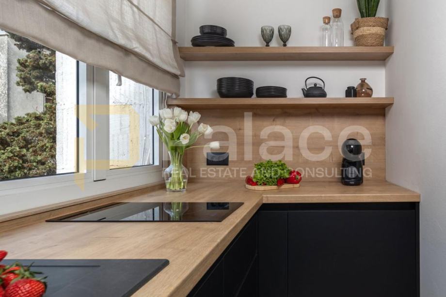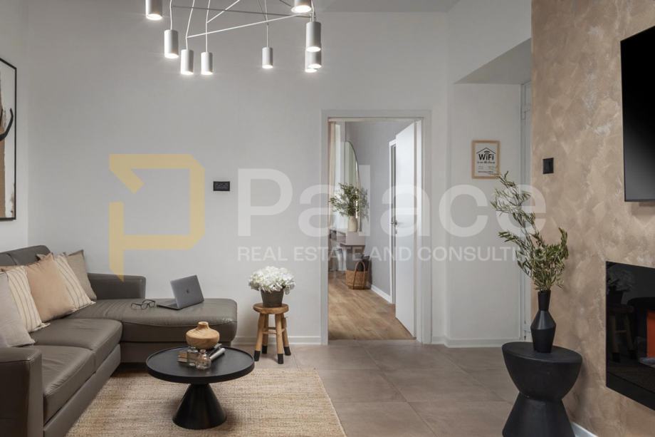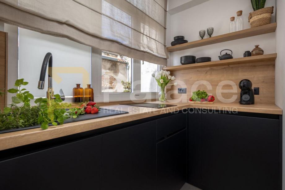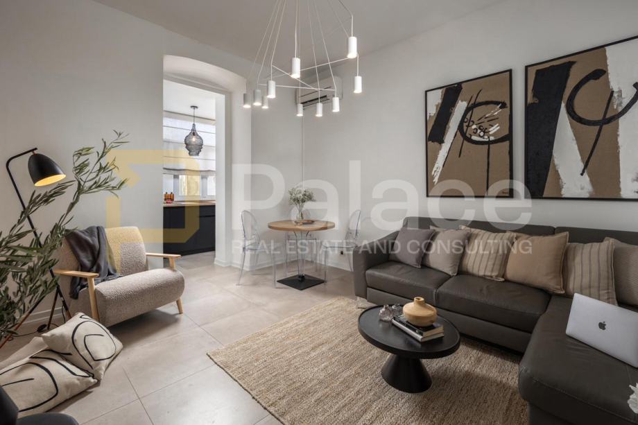 Na prodaju je ovaj moderno uređeni stan od 50 m² smješten je na drugom katu manje stambene zgrade u samom centru Pule. Zgrada je izgrađena 1968. godine, no stan je potpuno renoviran 2022. godine, čime je dobio suvremen i sofisticiran izgled. Opremljen je dizajnerskim namještajem koji stvara elegantan i ugodan ambijent.