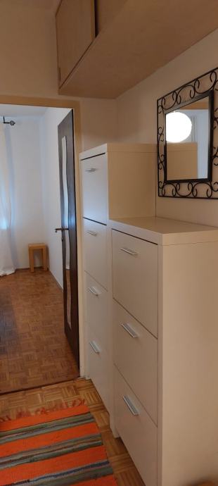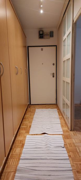 Stan se sastoji od dugackog ulaznog hodnika s ormarima, dnevnog boravka s kutnom garniturom, komode za TV, blagavaonskog stola i stolica, potpuno opremljene kuhinje sa svim aparatima, mikrovalnom i perilicom sudja, te ostavom, dvije velike spavace sobe, novo uredene kupaonice s tuš kabinom i perilicom rublja, te odvojenim toaletom.