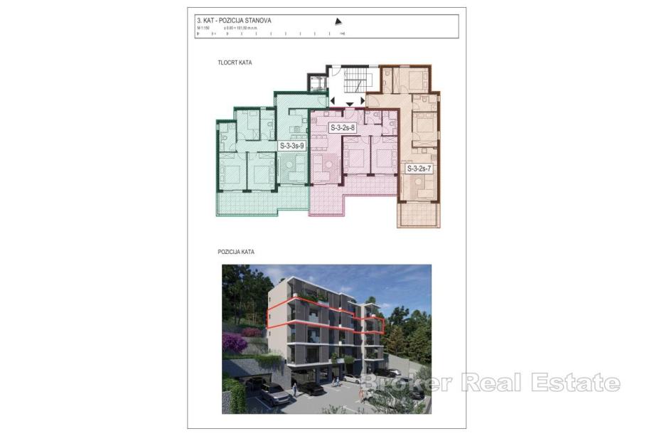 Dodatne stanove u zgradi nešto drugačijeg tlocrta možete pronaći pod šiframa nekretnine 2041/122 i 2041/123