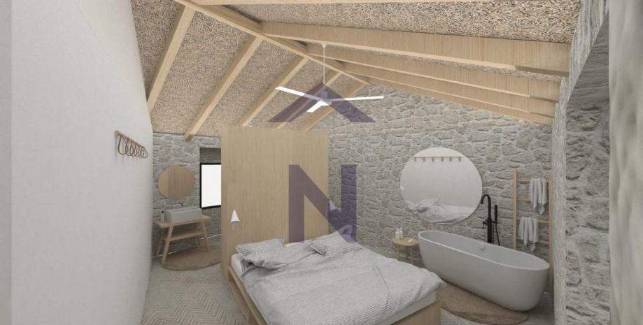 Na drugom katu jedna spavaća soba s kupaonom i terasom.