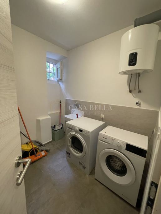 CASA BELLA iz ponude izdvaja moderno uređen stan smješten u samom srcu Opatije, u neposrednoj blizini svih važnih sadržaja. Stan se nalazi u prizemlju održavane zgrade s urednom fasadom i prostire se na ukupnoj površini od 100m2. Interijer stana odlikuje moderan dizajn s otvorenim prostorom koji kombinira dnevni boravak i kuhinju, orijentiran prema jugozapadnoj strani. Stan također uključuje dvije prostrane spavaće sobe, dvije elegantne kupaonice te praktičnu veliku ostavu. Za udobnost i učinkovitost grijanja brine se klimatizacijski sustav s ukupno tri klima uređaja.