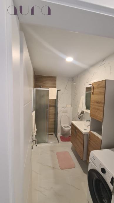 Stan je kompletno renoviran tijekom 2024. godine, pri čemu je posebna pažnja posvećena detaljima, funkcionalnosti prostora i korištenju provjereno kvalitetnih materijala i opreme. Interijer je moderan, elegantan i topao, a zahvaljujući velikim staklenim površinama stan je iznimno svijetao, prozračan i ugodan za boravak tijekom cijelog dana.