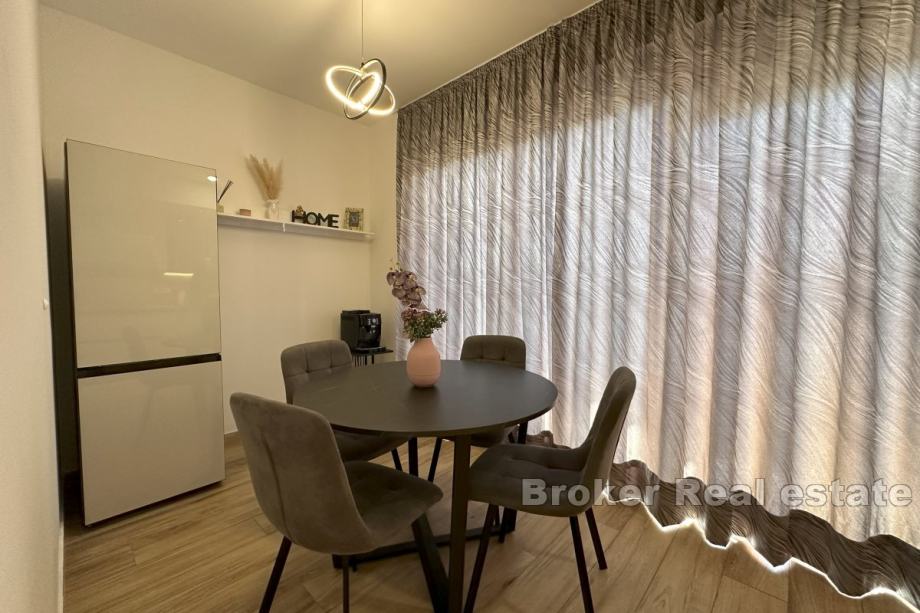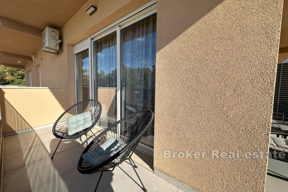 Stan se prostire na 48 m² i sastoji se od kuhinje s blagovaonicom koja ima izlaz na terasu, prostranog dnevnog boravka, moderne kupaonice te spavaće sobe s direktnim izlazom na terasu. Stan je smješten na prvom katu stambene zgrade i ima osiguran parking ispred zgrade.