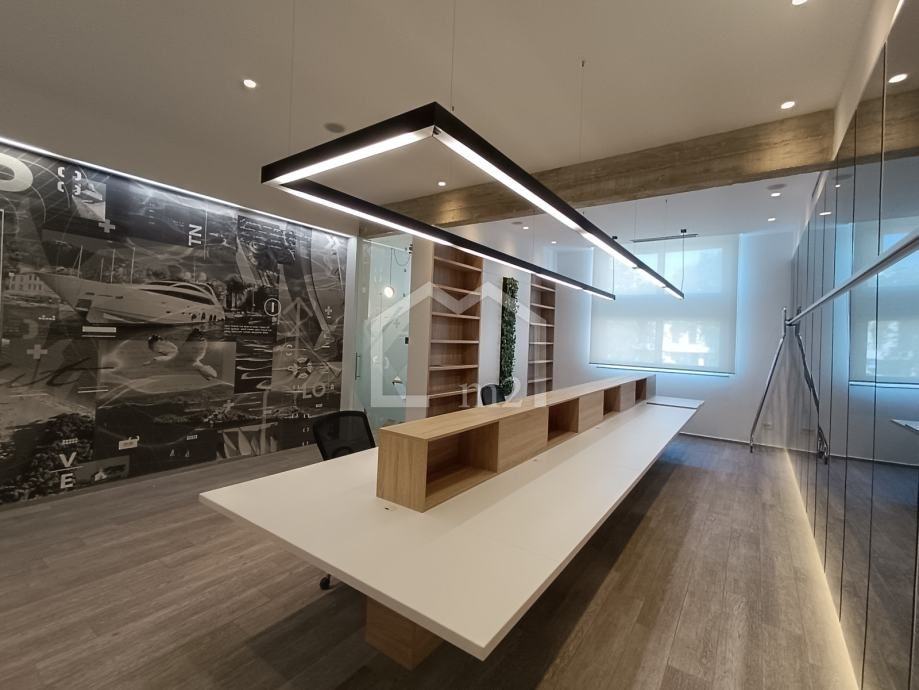 Nalazi se u neposrednoj blizini centra grada, na prvom katu stambeno-poslovne zgrade, površine 88,10 m2. Prostor se sastoji od ulaznog dijela, jedne velike prostorije, dvije manje prostorije, kompletno opremljene kuhinje, kupaone sa tuš kabinom, jednog odvojenog wc-a. U prostoru se nalazi puno polica i ugradbenog prostora, ormar za server i IT opremu, podno grijanje i klima uređaj za maksimalnu udobnost te video nadzor za sigurnost vašeg poslovanja. Zgrada ima lift a javni parking se nalazi preko puta zgrade.