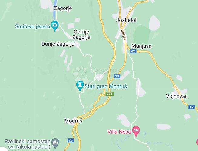Modruš, Općina Josipdol - mjesto zanimljive povijesti - znamenito srednjevjekovno naselje, sijelo obitelji Frankopan od 1193.g. do 16.st., s ruševinama modruške tvrđave Tržan-Grada, u čijoj blizini nudimo na prodaju veliku šumu ukupne površine 44.679m2.