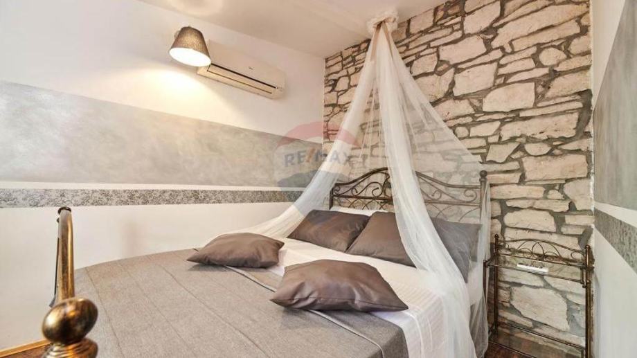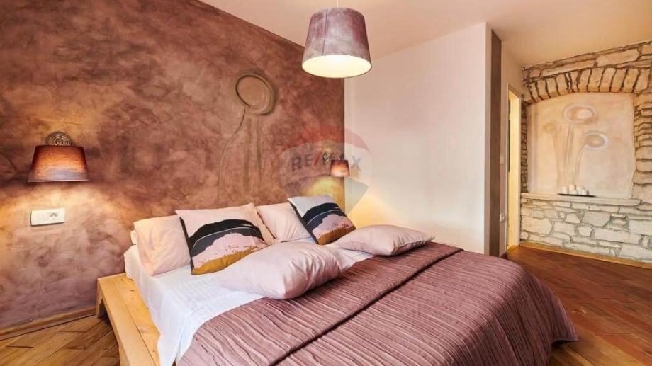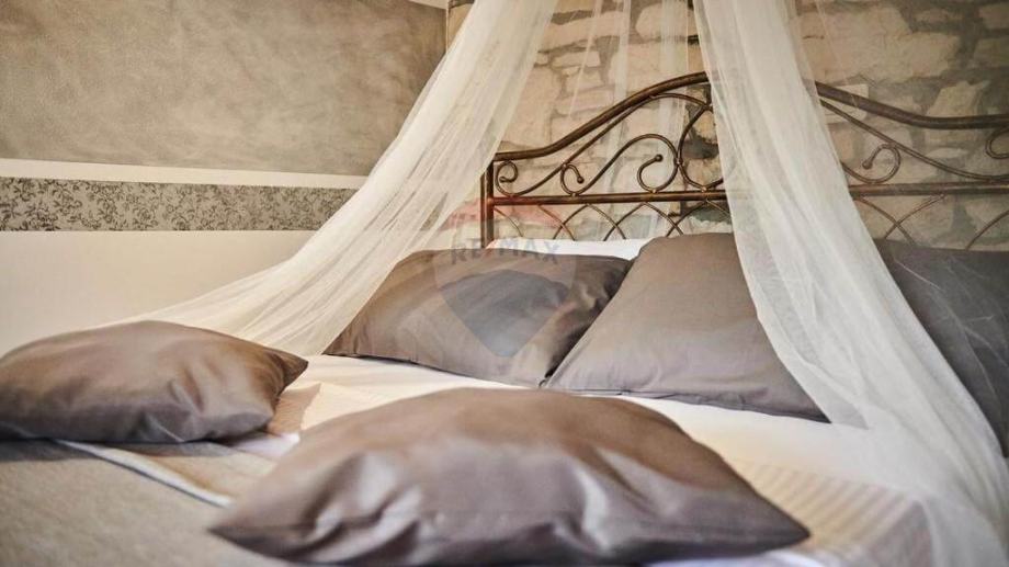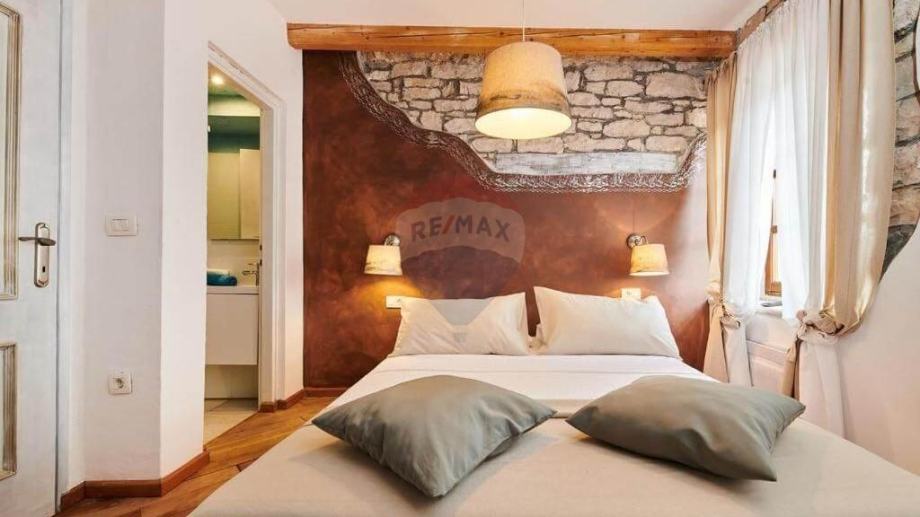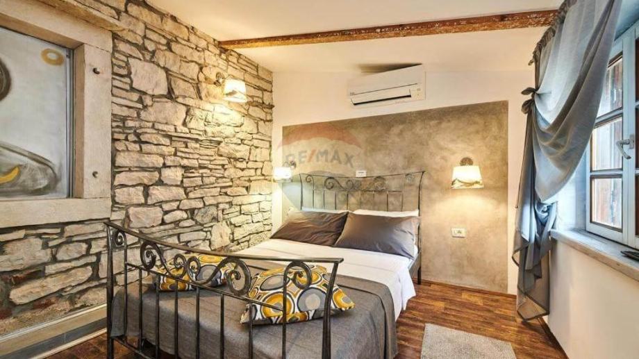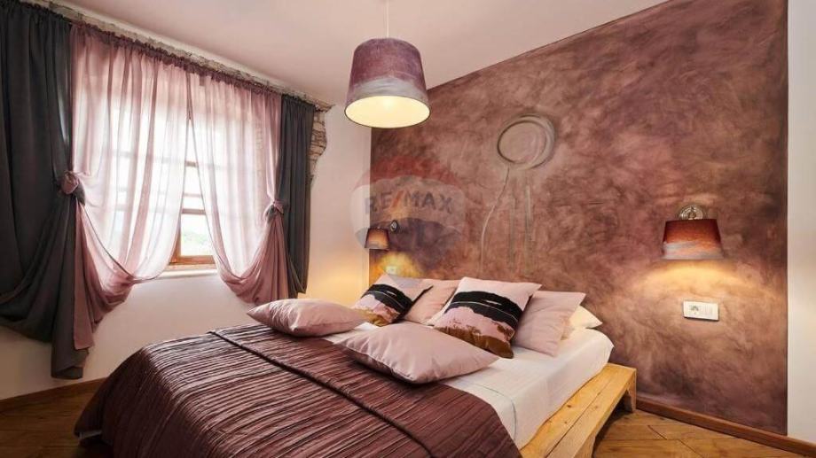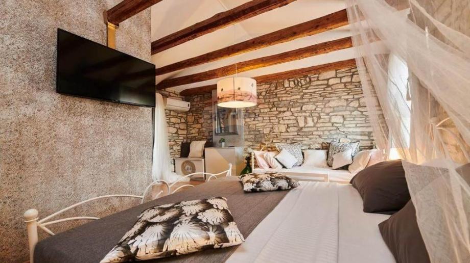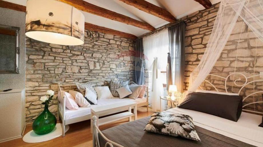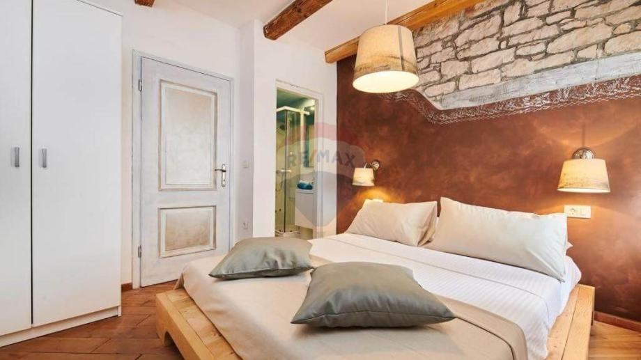 Na katu do kojeg se dolazi direktnim ulazom s područja vrta i bazena se nalazi pet soba u istarskom rustikalnom stilu, svaka sa svojom kupaonom.