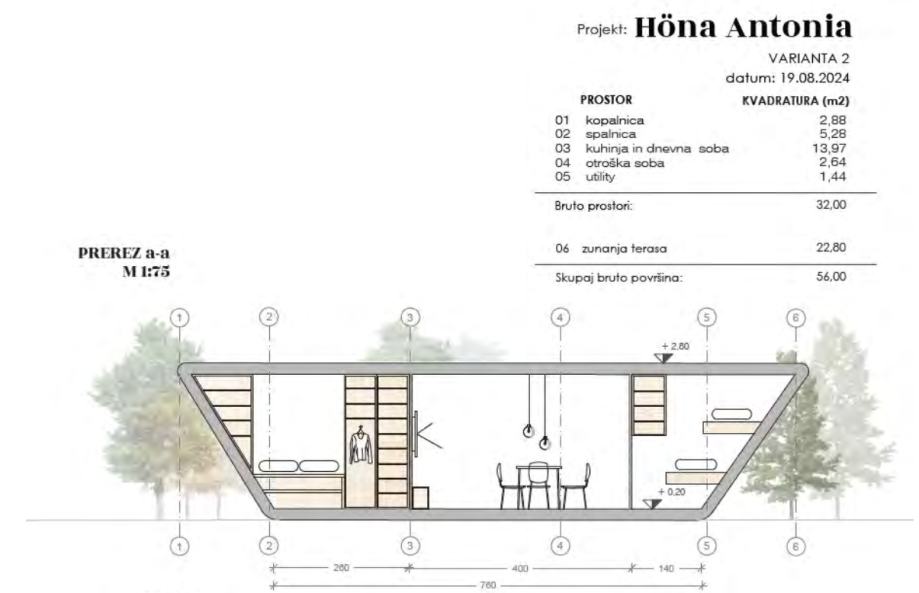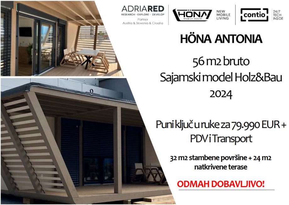 Sadrži 32 m2 stambene površine + 24 m2 natkrivene terase.