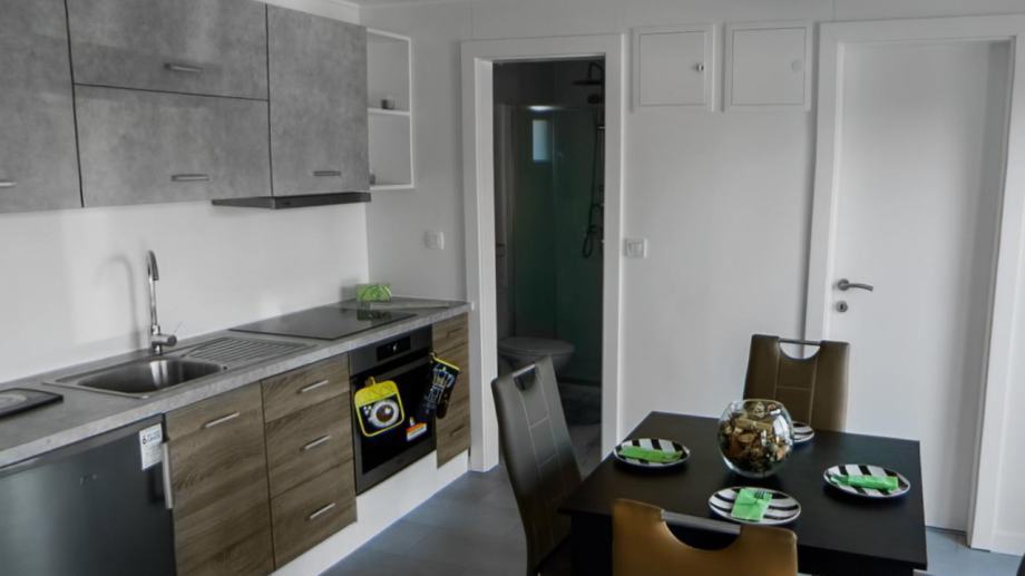 i iskorišten unutarnji prostor koji sadrži dvije spavaće sobe, kupaonicu, te kuhinju i dnevni boravak gdje