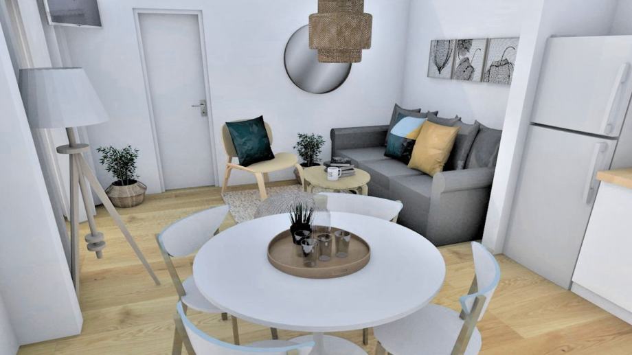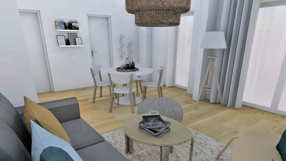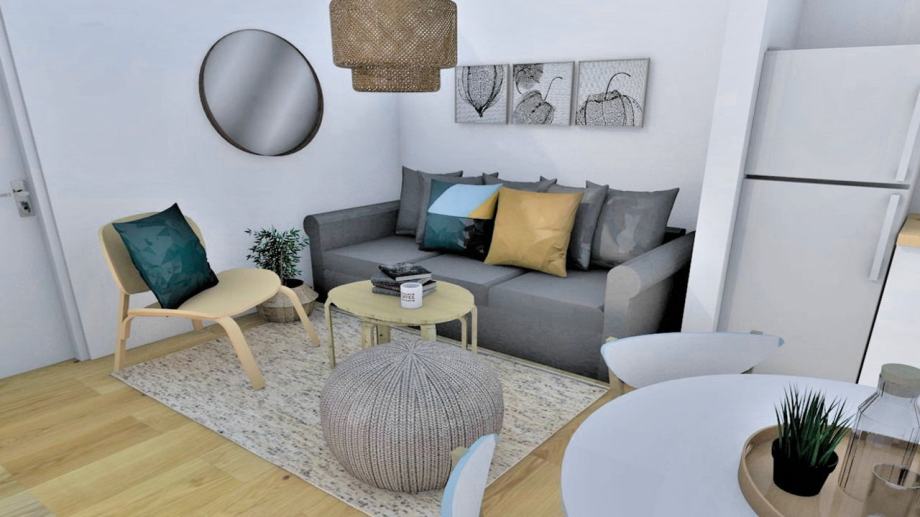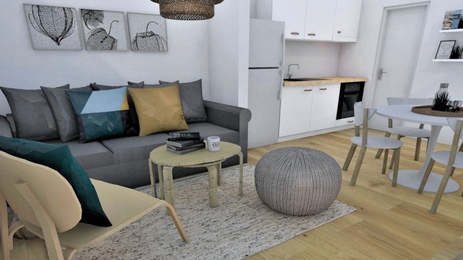 i iskorišten unutarnji prostor koji sadrži dvije spavaće sobe, kupaonicu, te kuhinju i dnevni boravak gdje
