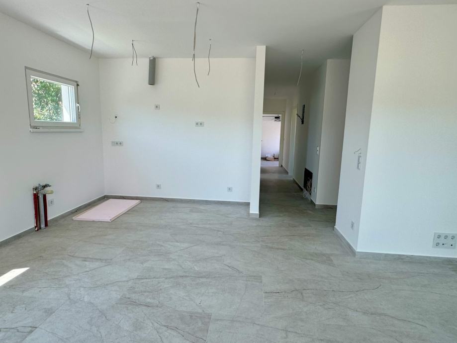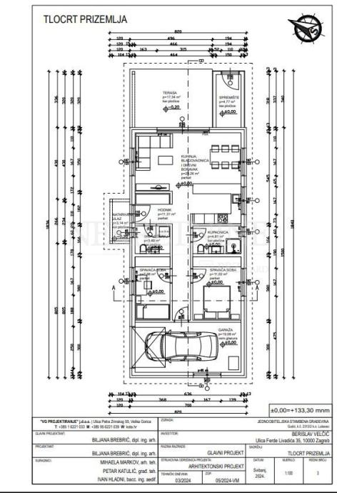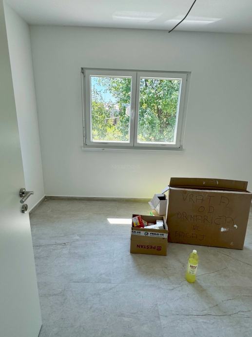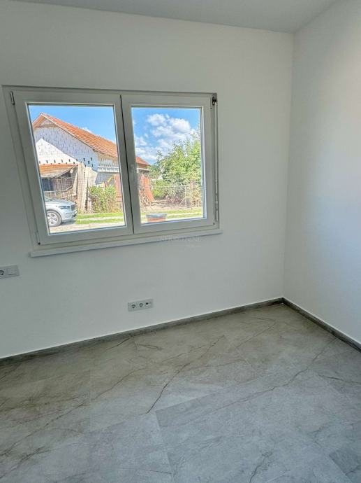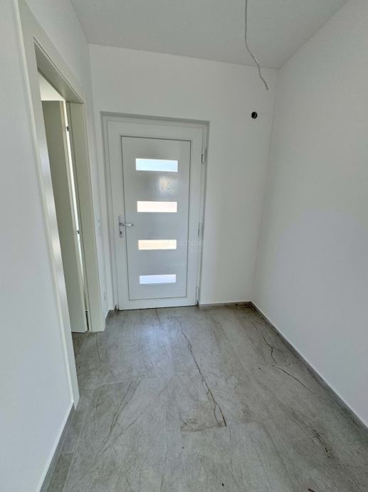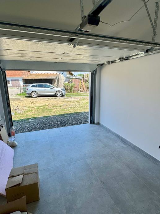 Kuća se sastoji od: ulaznog prostora, hodnika, gospodarske prostorije, dvije spavaće sobe, prostranog dnevnog boravka, kupaonice, WC-a, spremišta, garaže i terase. Na parceli su moguća dodatna vanjska parkirna mjesta.