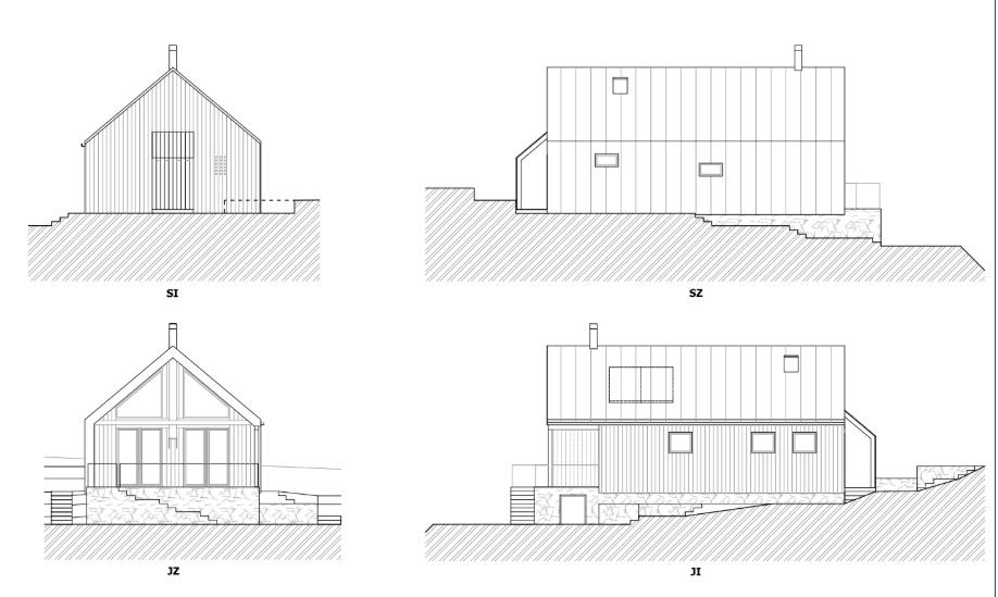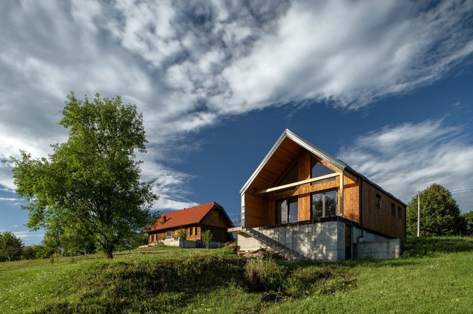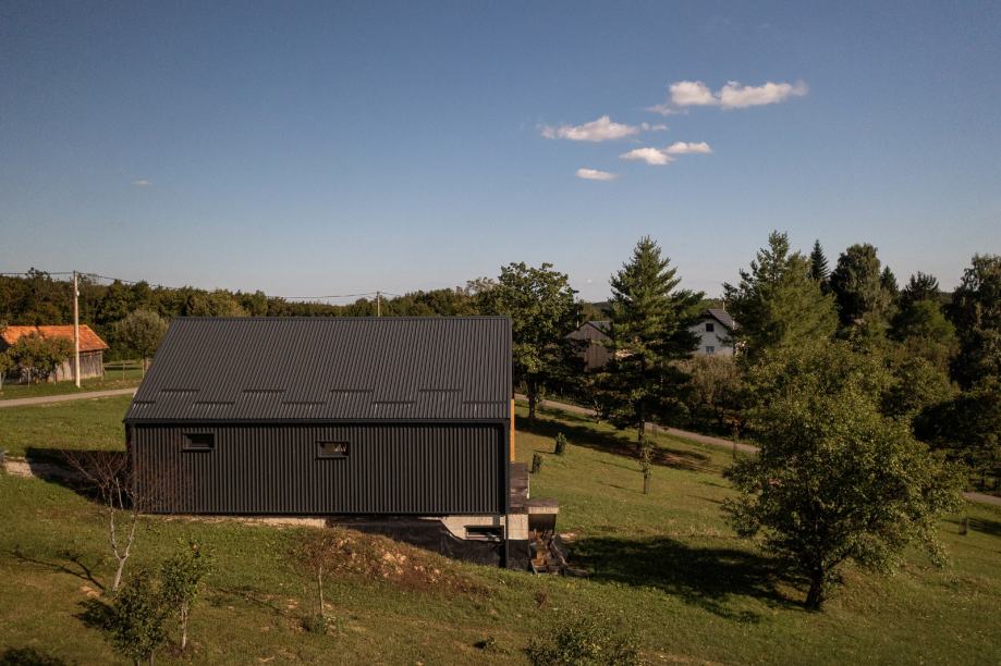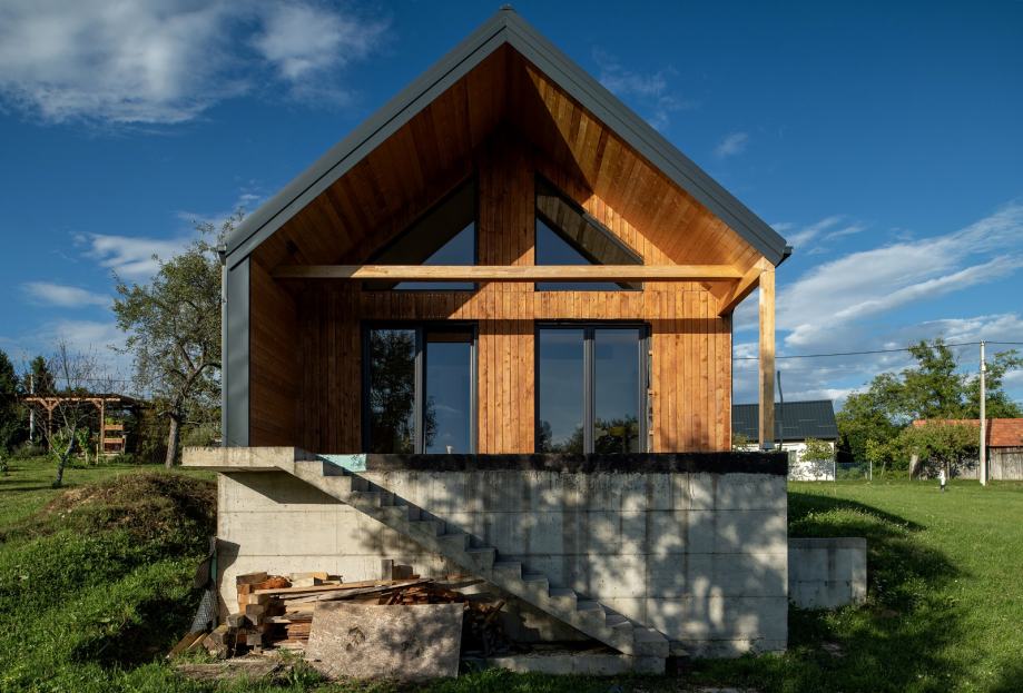 - Kuća obložena limom i daskama impregniranima fungicidom i skandinavskom glazurom – otporna, izdržljiva, i vizualno atraktivna (mijenja nijansu ovisno o godišnjem dobu)