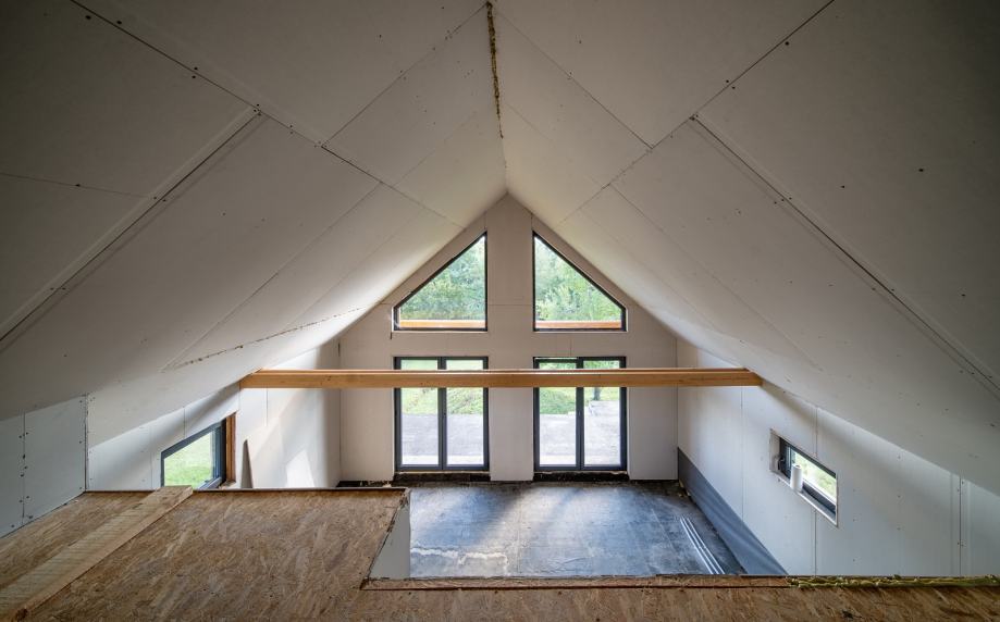 - Gornja galerija (otvoreno potkrovlje) – predviđena za dodatne spavaće sobe, radni prostor ili dječju igraonicu