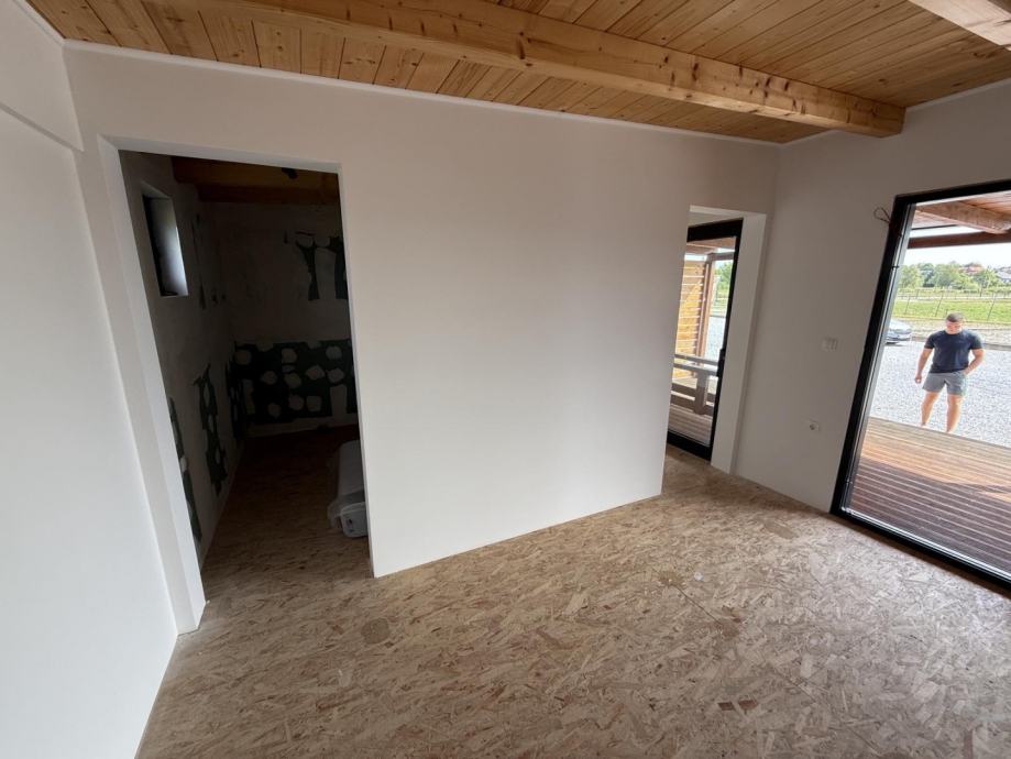 Prodajemo potpuno novi, skoro gotov montažni vikend objekt, površine 32 m² neto + 22 m² terase, spreman za isporuku odmah (fco Varaždin).