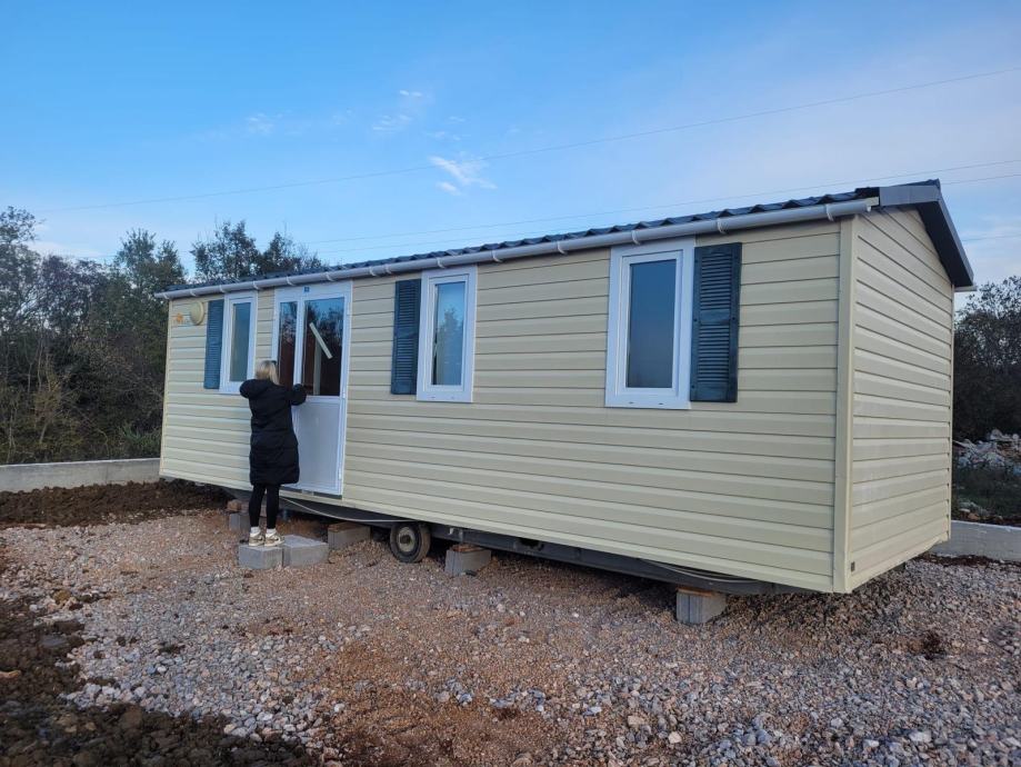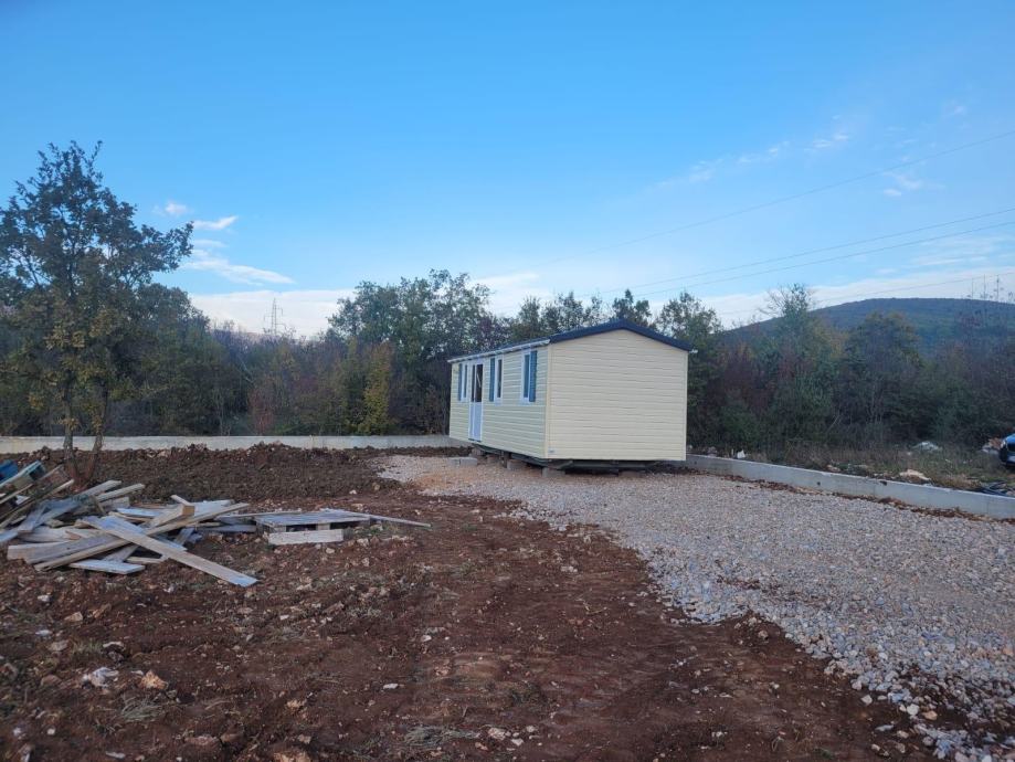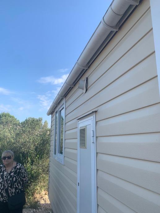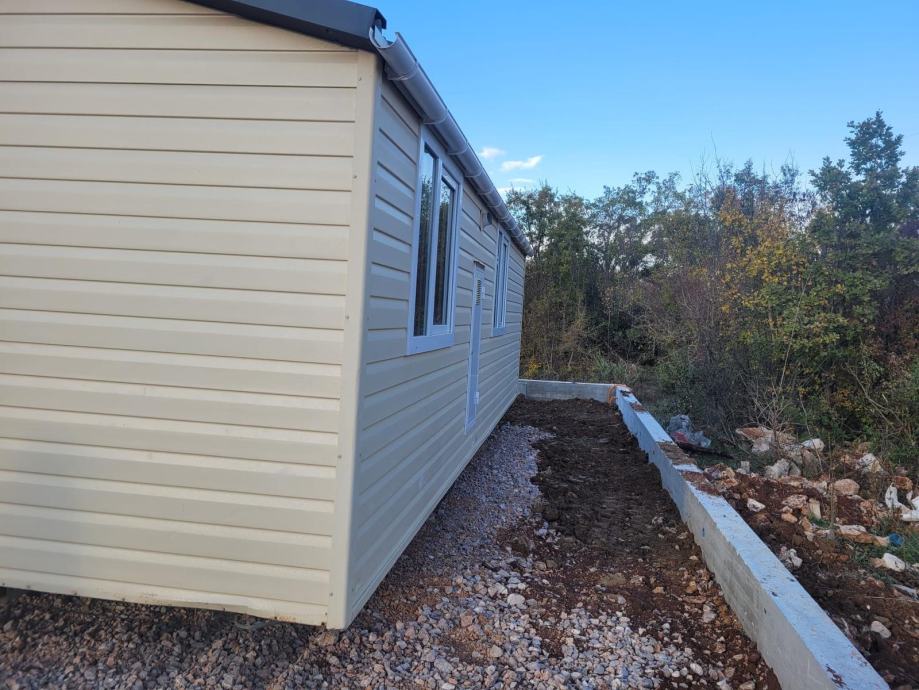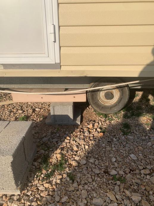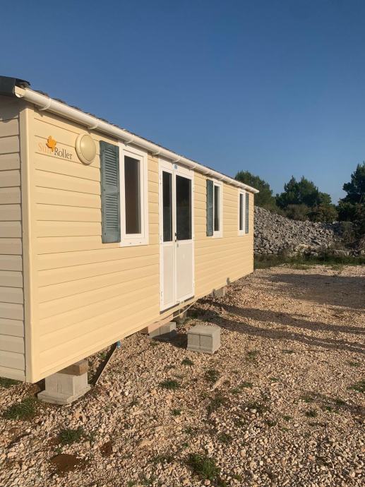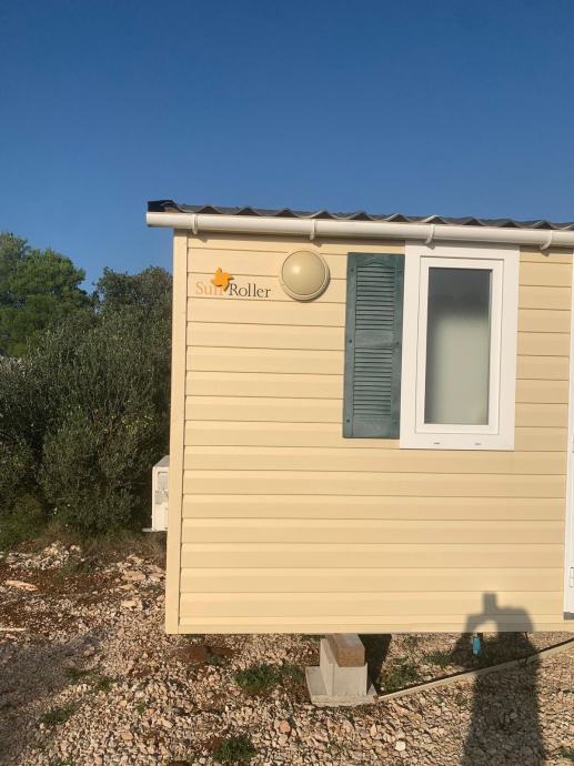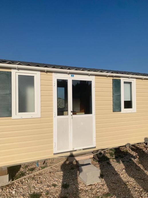 Prodajem mobilnu kućicu površine 24 m² smještenu u naselju Kraj pokraj Dicma, u Splitsko-dalmatinskoj županiji. Radi se o montažnom objektu svijetložute fasade s PVC stolarijom s duplim staklima i tamnim kapcima, postavljen na nosače iznad terena. Kućica je novije izvedbe, u odličnom stanju.
