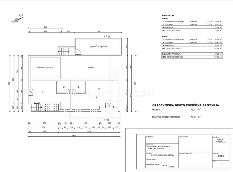 U prizemlju je roh-bau stambeni prostor od 60 m2 koje se može urediti u još jedan stan ili dva apartmana (za to postoji projekt).
