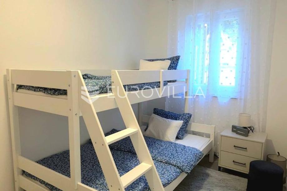 Kuća površine 131 m2 sastoji se od tri etaže.U suterenu se nalaze dvije odvojene prostorije. Jedna služi kao spremište a druga je trenutno opremljena kao prostor za druženje.Prizemlje je trosobni stan NKP 82 m2. Sastoji se od hodnika, dvije spavaće sobe, kupaonice i open space dnevnog boravka,kuhinje i blagovaonice iz koje ima izlaz na balkon.Na katu se nalazi prostorija u kojoj je smještena sauna. Iz prostorije je izlaz na terasu površine 54 m2 na kojoj su smještene dvije pergole, ispod jedne se nalazi jacuzzi a ispod druge vrtna garnitura. S terase se pruža spektakularan pogled.Kući pripada i 350 m2 uređene okućnice na koje se nalaze tri parkirna mjesta, dječje igralište i grill zona.Nekretnina je u potpunosti renovirana uključujući podne i zidne obloge, instalacije, sanitarije, stolarija i prodaje se namještena. Kuća ima i novu fasadu i krov.Nekretnina je pogodna kao obiteljska kuća ili kao investicija. Ima riješenu kategorizaciju i trenutno se iznajmljuje.Smještena je 2 km od mora okružena predivnom prirodom.Vlasništvo čisto.Za ostale informacije obratite nam se s povjerenjem....Za ovu nekretninu kontaktirajte asistenta u prodaji na broj telefona +385 91 726 8094.Više na Eurovilla.hr, ID: 568586Direktan link: https://eurovilla.hr/nekretnina/moscenicka-draga-golovik-dvojna-kuca-s-wellness-zonom-i-predivnim-pogledom/568586/-----... For this property contact our agent on telephone number +385 91 726 8094.More on Eurovilla.hr, ID: 568586Direct link: https://eurovilla.hr/en/property/moscenicka-draga-golovik-semi-detached-house-with-wellness-area-and-beautiful-view/568586/...