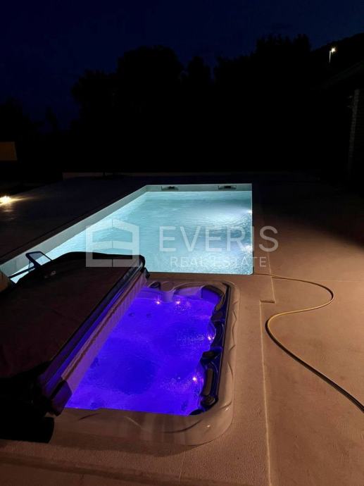 * bazenom površine 40 m2 (8X5), bazen ima pripremu instalacija za ugradnju dizalice topline za grijanje