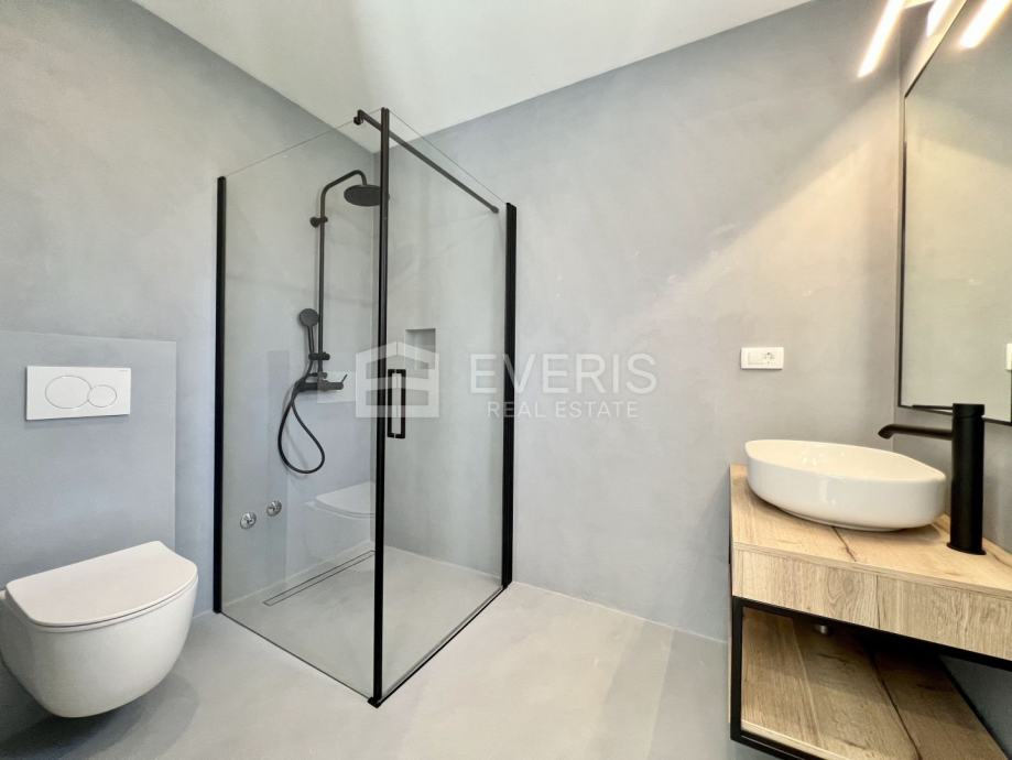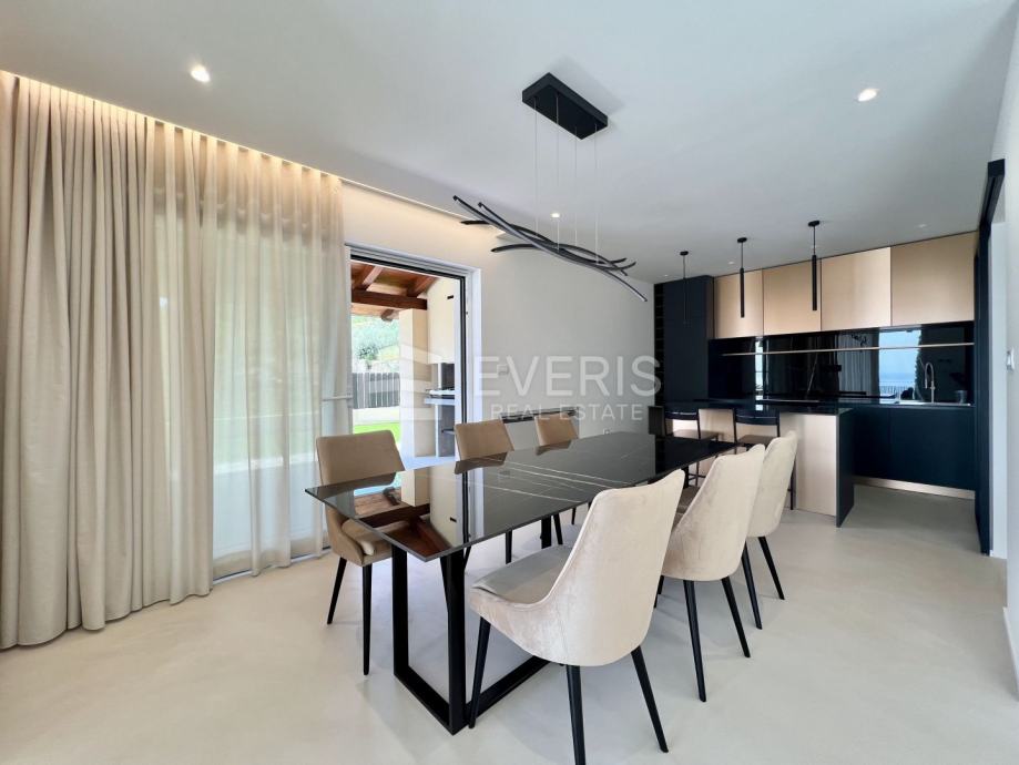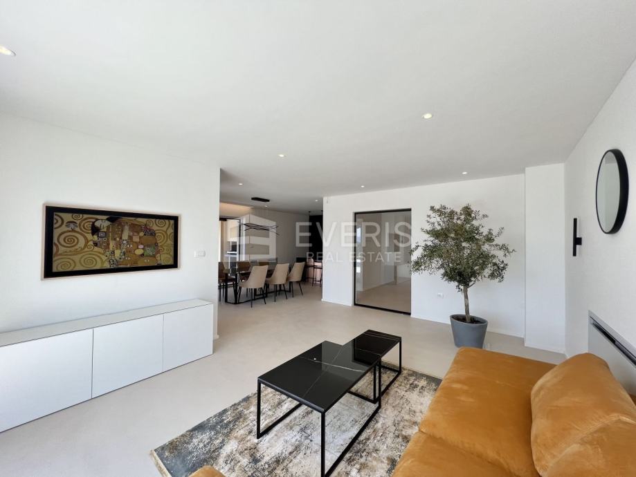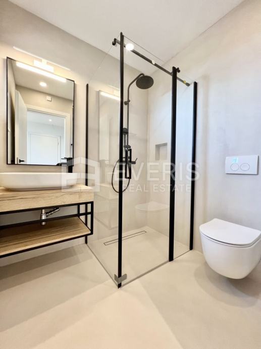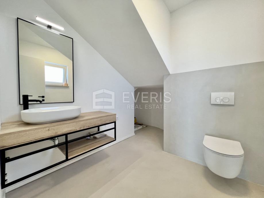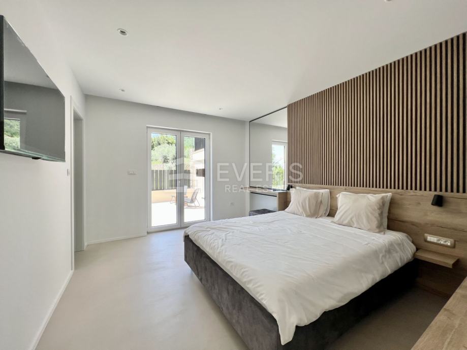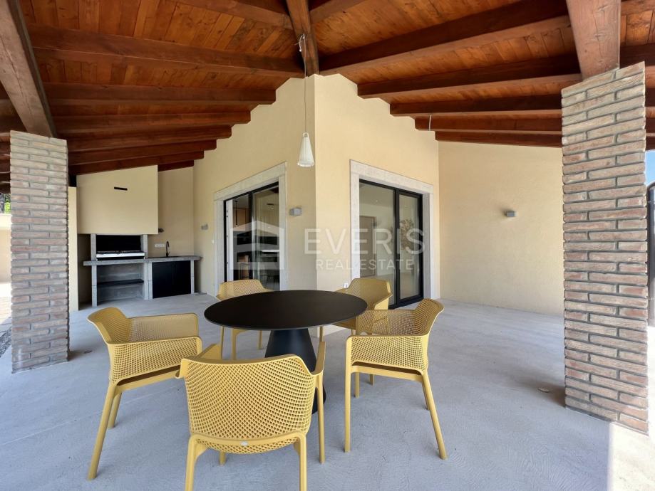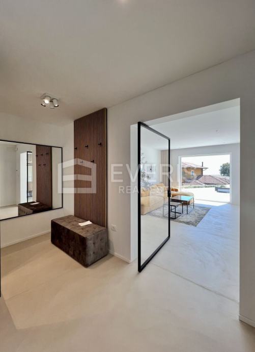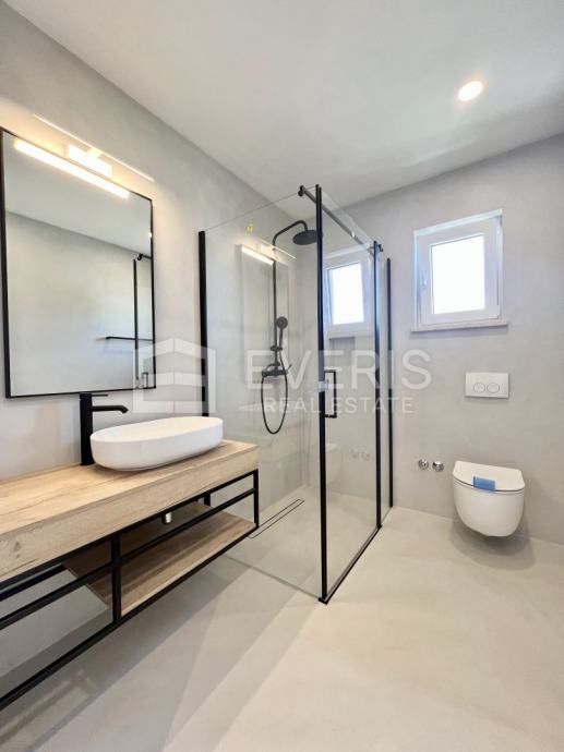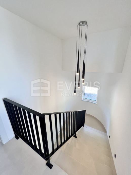 Stambeni prostor moderno uređene i novo opremljene nekretnine obuhvaća 163 m2 prostora unutar kuće te s terasom (30 m2) i s dva natkrivena balkona (11,6m2), sveukupne površine 204 m2.