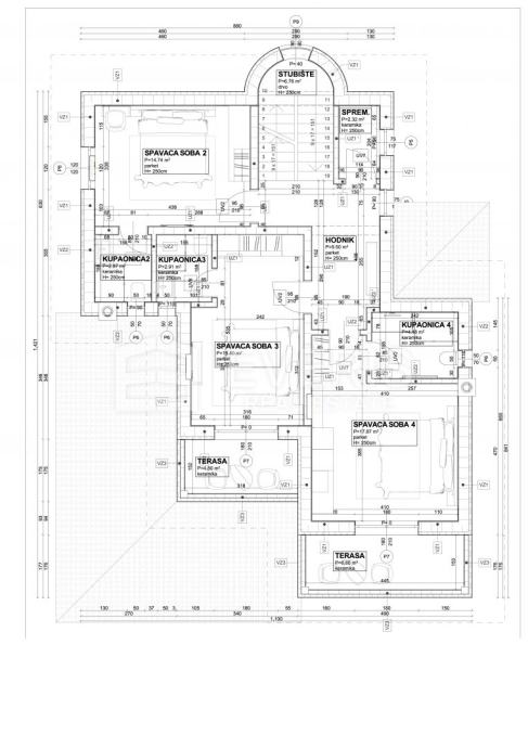 * Dvije natkrivene terase (11,6 m2) koje pripadaju spavaćim sobama na katu
