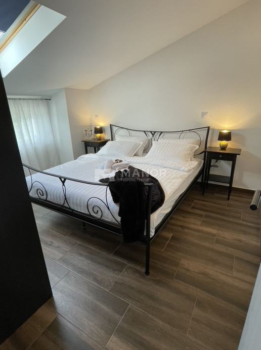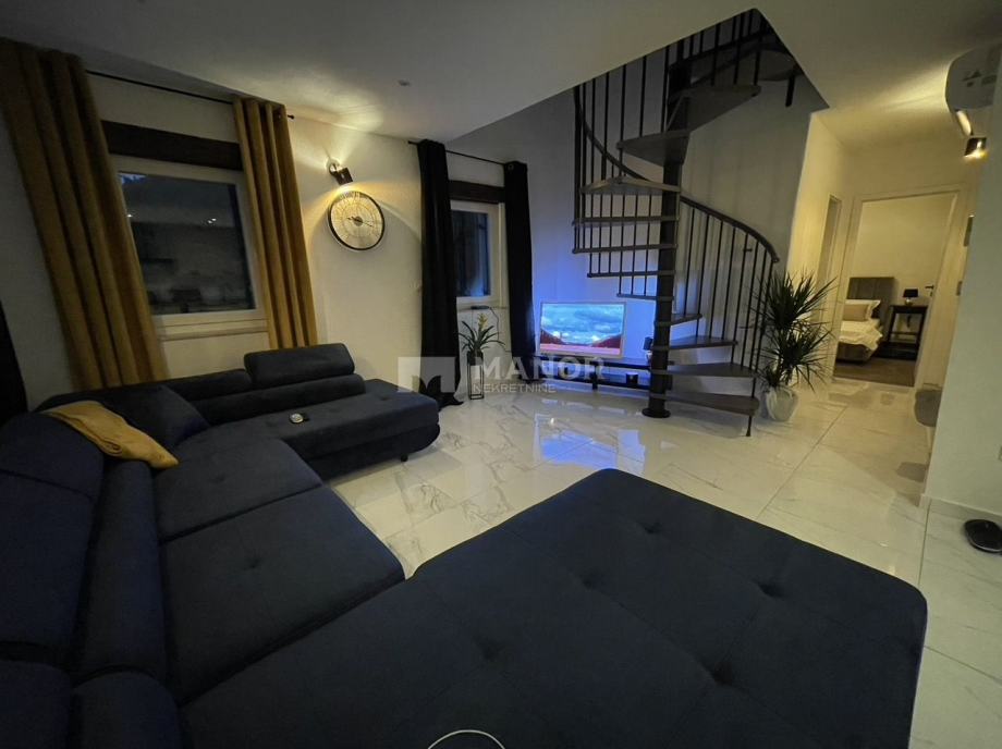 Spiralnim stepeništem penjemo se na gornju etažu stana koja se sastoji od 3 spavaće sobe i dvije kupaonice.