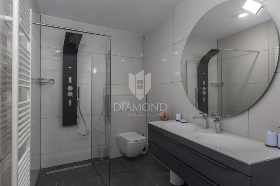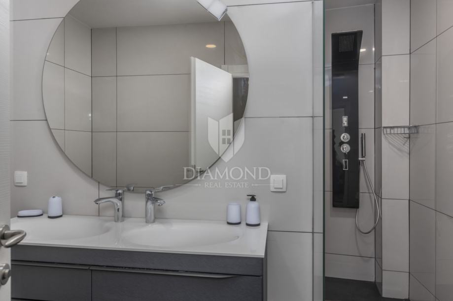 Poseban naglasak stavljen je na sadržaje koji ovu vilu čine pravim utočištem opuštanja i luksuza. Wellness zona uključuje saunu i prostor za opuštanje, dok prostrani grijani bazen na vanjskoj terasi nudi priliku za osvježenje uz nezaboravan pogled na morski horizont. Vila je opremljena podnim grijanjem i najmodernijim sustavima klimatizacije, čime je osigurana maksimalna udobnost tijekom cijele godine.