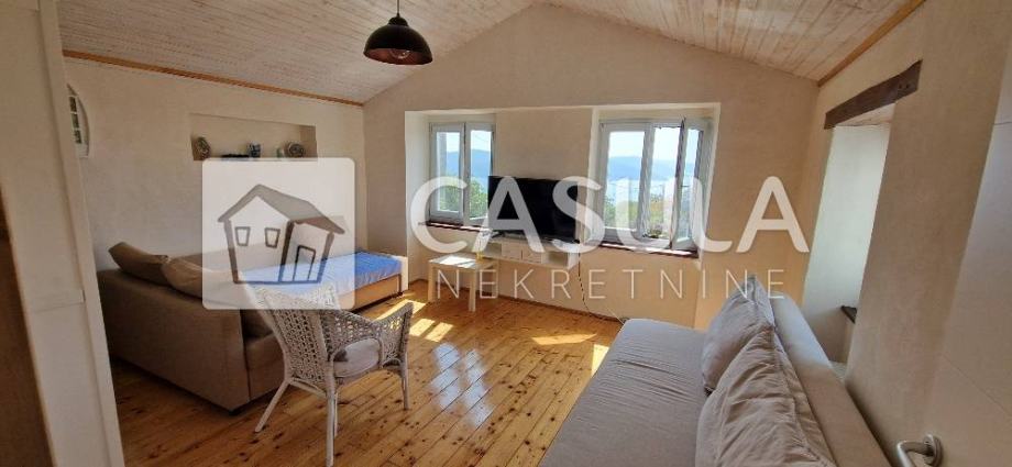 U malom mirnom selu u blizini Mošćeničke drage nalazi se stara kamena kuća površine 66 m2 raspoređenih u dvije etaže (2x33m2). Kući pripada 16 m2 okućnice i 80 m2 parkinga.