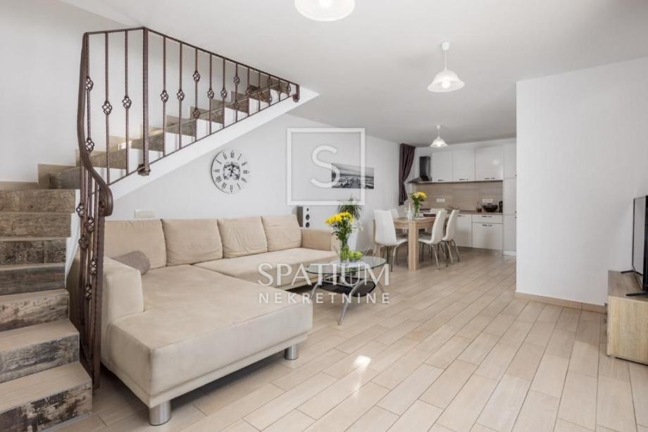 Kat: dvije spavaće sobe, svaka s izlazom na balkon i kupaona. Tri klima uređaja za grijanje/hlađenje, novi krov, termo fasada, PVC stolarija