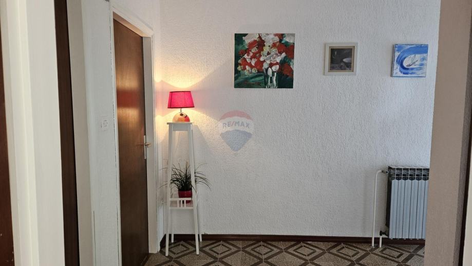 Sastoji se od dvije etaže, 1. kata gdje se cijelom etažom proteže uređeni stambeni prostor, u naravi trosobni stan sa dnevnim boravkom, kuhinjom i kupaonom površine 83 m2, balkonom od 10 m2 i velikom terasom od 30 m2. Stan je ove godine obnovljen i opremljen, uređena je kupaonica, te vanjska i unutarnja stolarija. Fasada kuće je također uređena sa terasama i cijelim dvorištem.