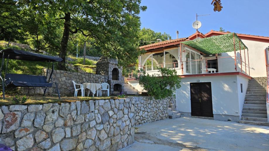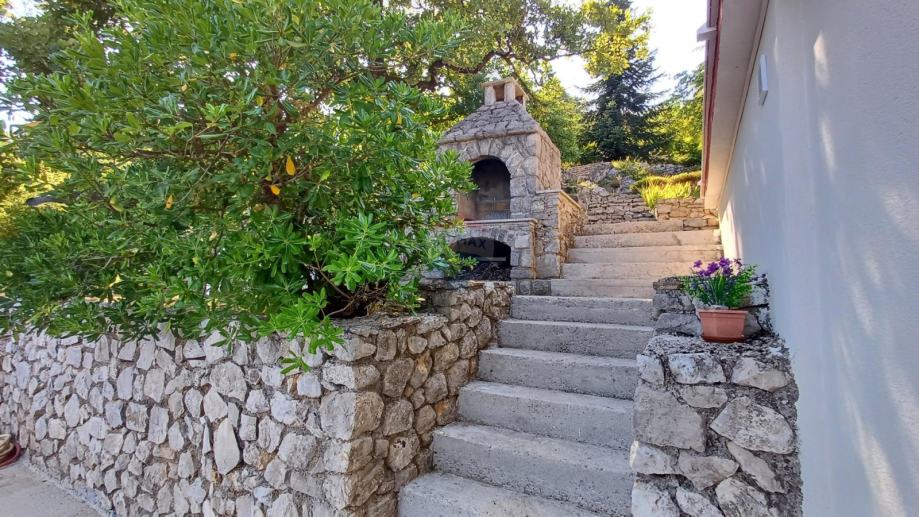 Velika okućnica od 1027 m2 predivna je zelena oaza omeđena starinskim suhozidima, voćkama i vrtom, zidanim kamenim roštiljem, osunčanom terasom i idealni su za druženja na svježem zraku u toplim ljetnim mjesecima.