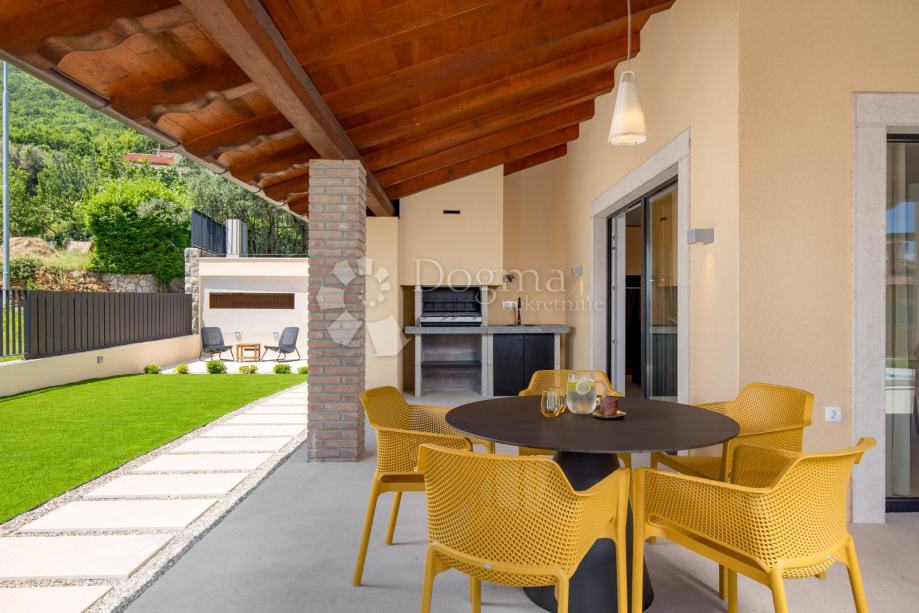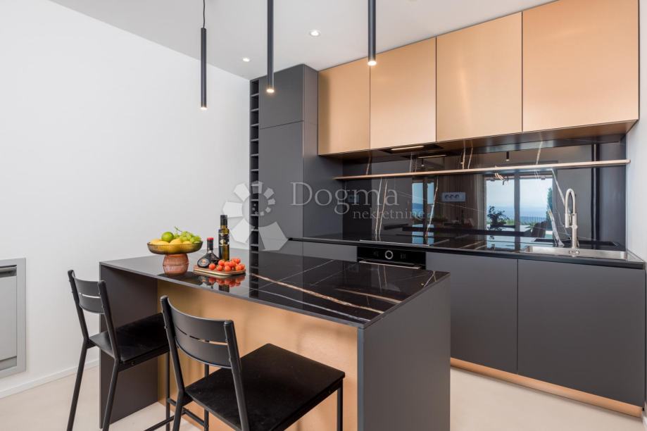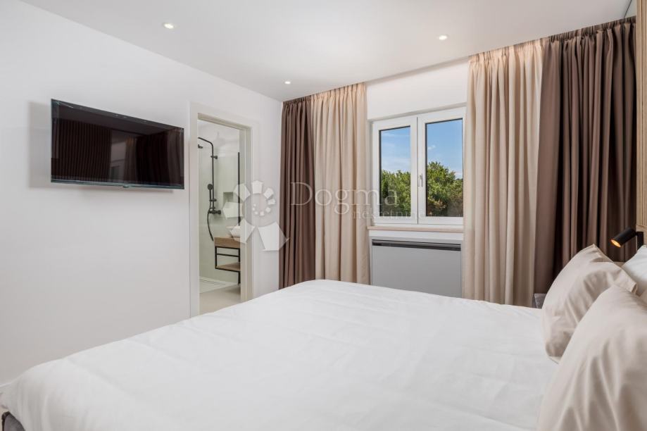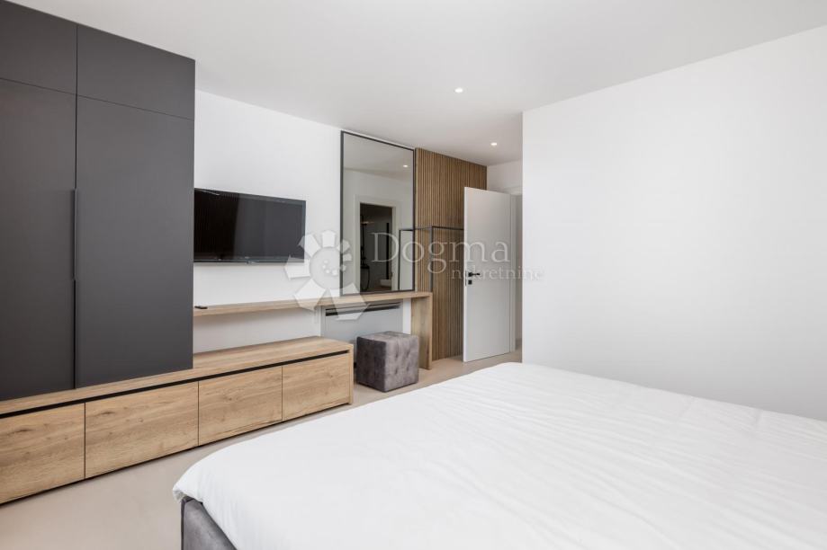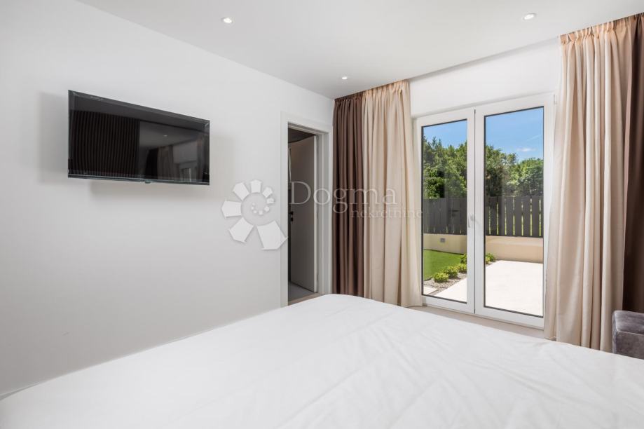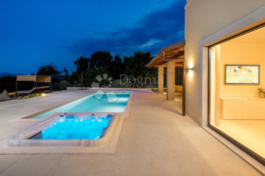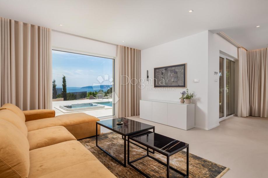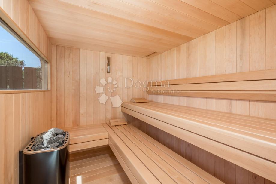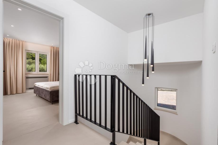 Moderna villa uz more. Prekrasna novoizgrađena luksuzna kuća s bazenom jacuzzijem,saunom te divno uređenim vrtom.Nalazi se na ekskluzivnoj lokaciji uz more,u miru i okružena zelenilom i prekrasnim pogledom na more i okolicu.Prostrani interijer prepun svijetla, moderno je i luksuzno namješten i opremljen.Visoko kvalitetna gradnja i opremljenost interijera i eksterijera ove ville za potpunu udobnost življenja.