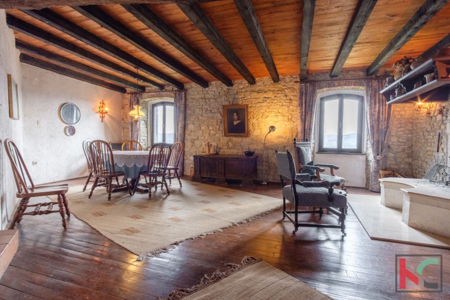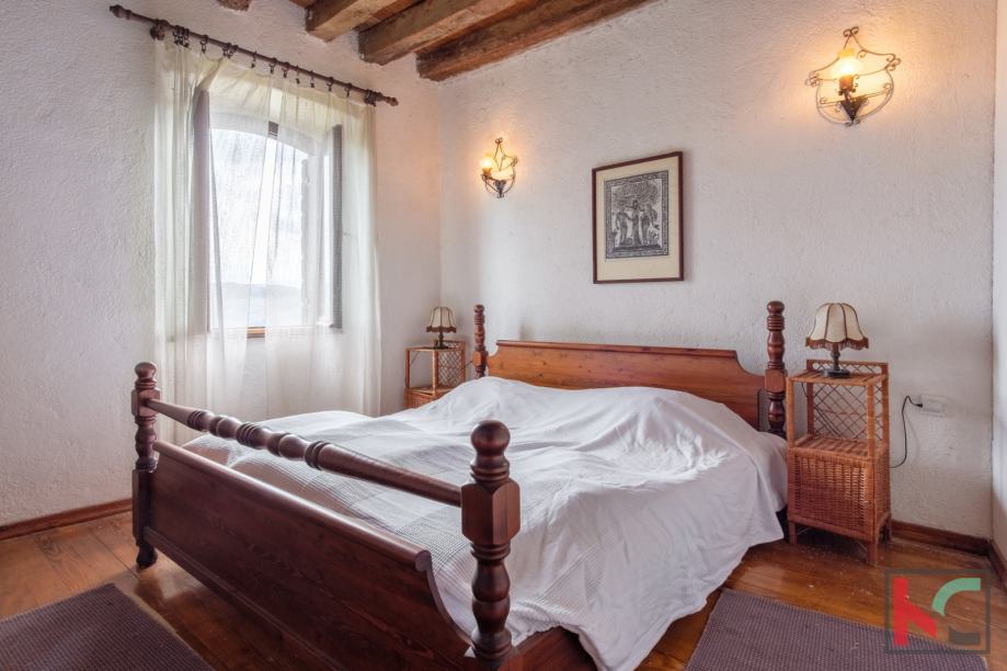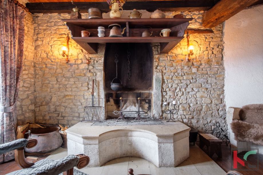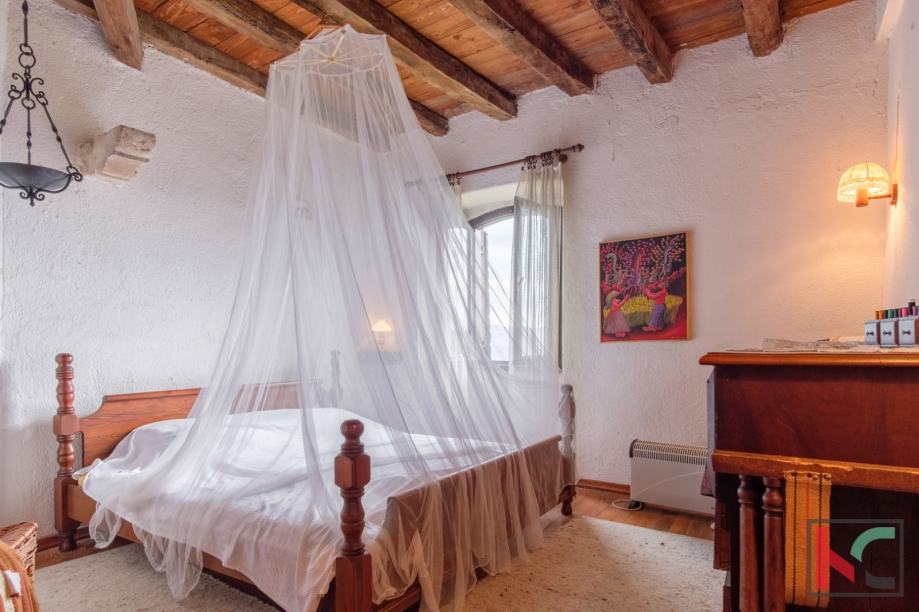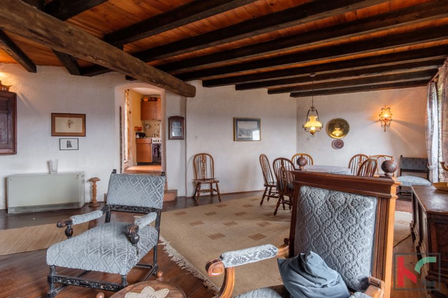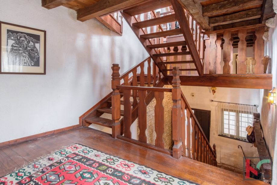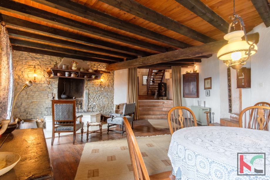 Smještena u srcu šarmantnog Motovuna, ova kamena kuća nudi 250 m2 prostora za udoban život. Sa svojih 4 spavaće sobe, pruža dovoljno prostora koji je moguće urediti u svom stilu i ukomponirati već postojeće detalje kao što su staro ognjište i impozantne masivne drvene grede. Iz svih prostorija kuće pruža se prekrasan pogled na prirodu, a stara šterna i prostor oko nje nudi jedinstven doživljaj boravka na otvorenom sa otvorenim pogledom.