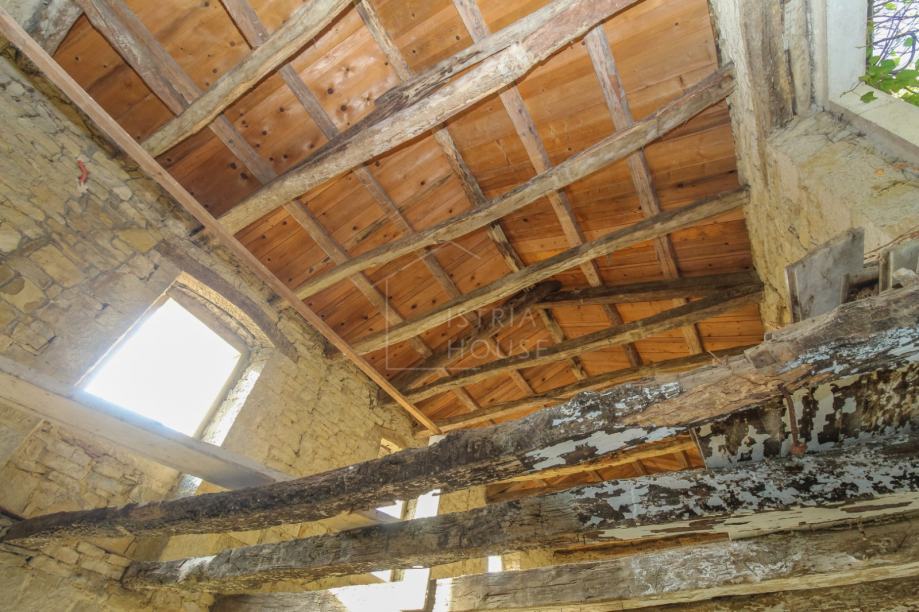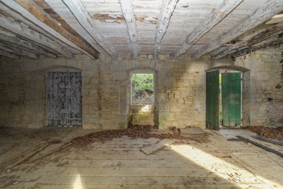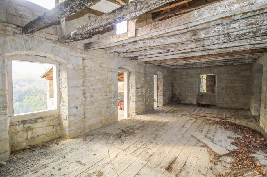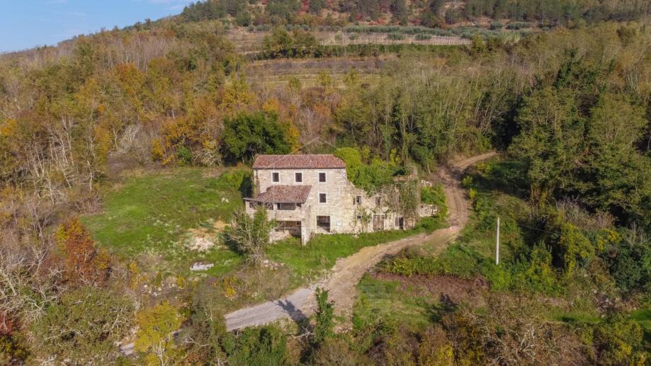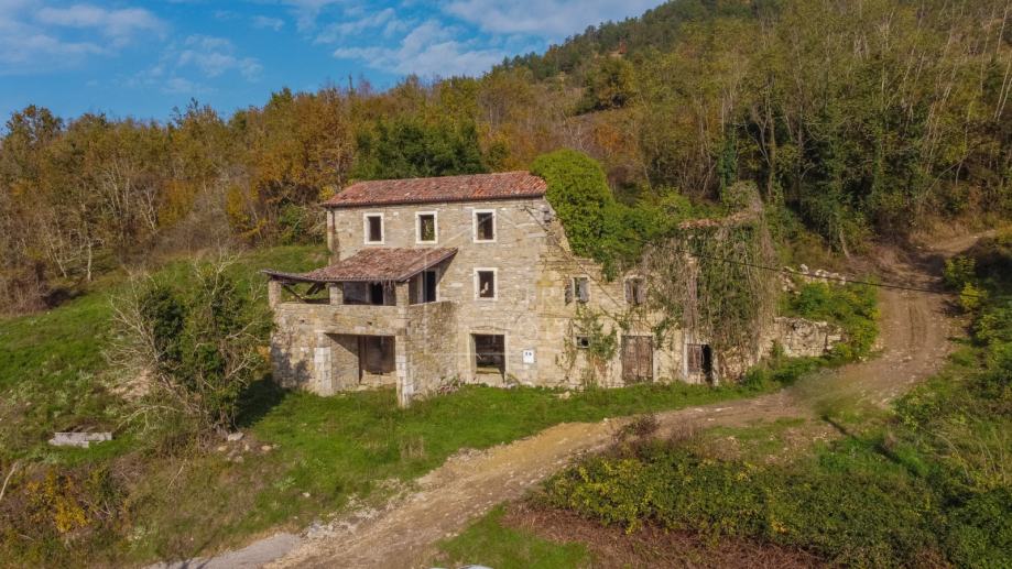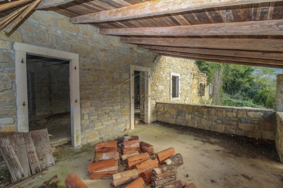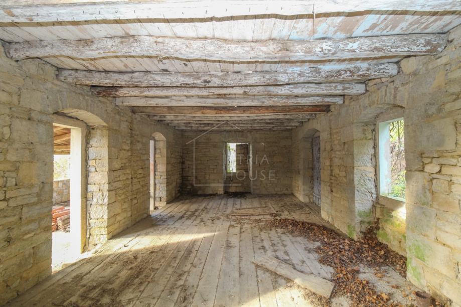Kuća se u naravi sastoji od dvije kamene kuće. Prva kuća je u boljem stanju te sastoji od prizemlja, prvog kata i drugog kata. Na prvom katu se nalazi prekrasna velika terasa s pogledom. Druga kuća je u ruševnom stanju, a sastoji se od prizemlja i prvog kata. Obje kuće zahtjevaju kompletnu renovaciju od temelja do krova. Ispred kuće se nalazi dvorište sa kojega se također pruža panoramski pogled na vinograde i maslinike. Nekretninu okružuje šuma i netaknuta priroda, a idealna je za sve one koji posjeduju pse i ostale kućne ljubimce. Prekrasni Motovun je udaljen samo nekoliko kilometara sa svim svojim povijesnim, umjetničkim i gastronomskim ponudama te prekrasnim panoramskim pogledima.